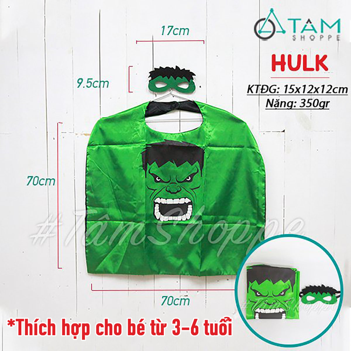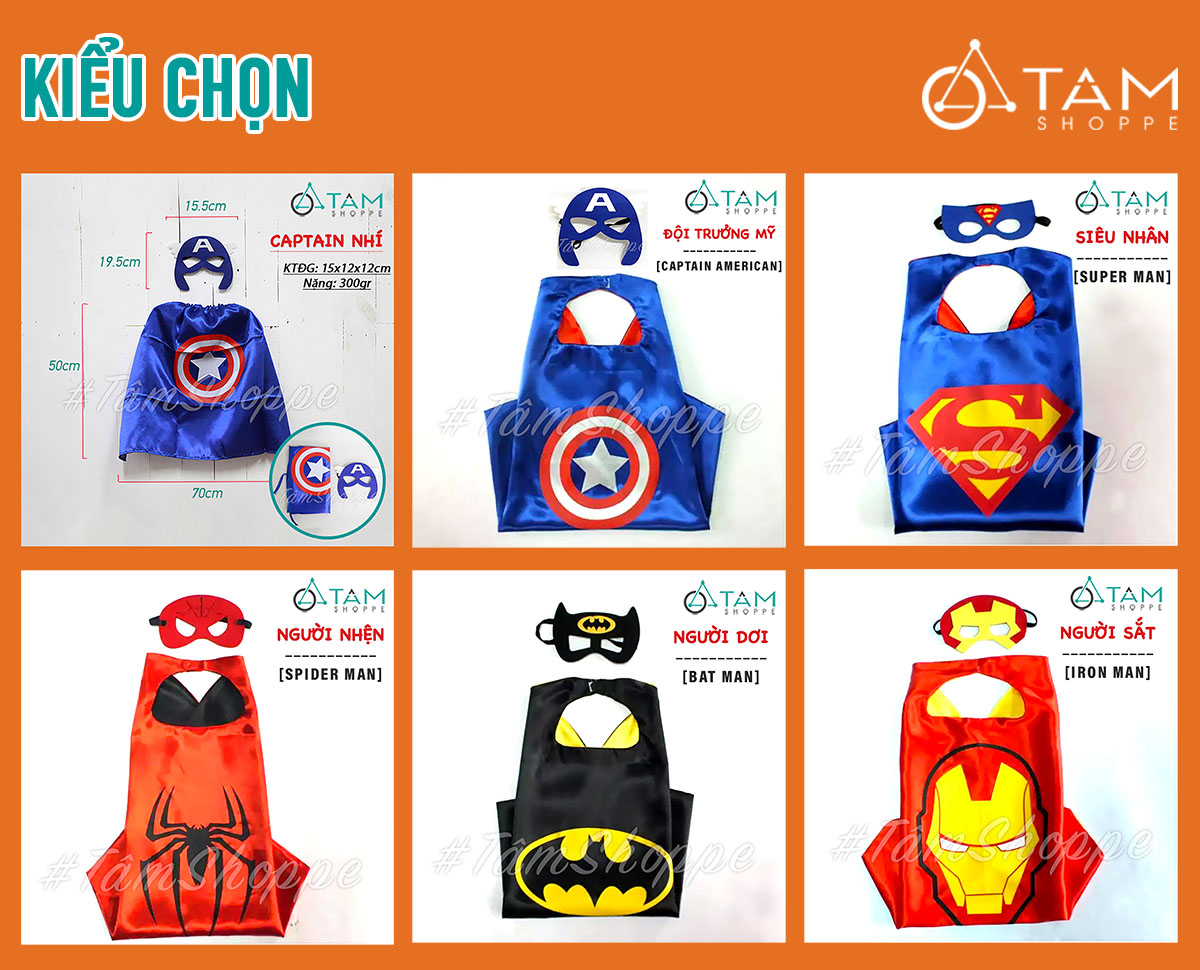Set áo choàng + mặt nạ nỉ hoá trang siêu anh hùng cho bé [Vải 2 lớp - Nhiều kiểu] hoá trang đẹp mắt. Đồ hoá trang Halloween là những trang phục, phụ kiện và đạo cụ dùng để biến hoá thành các nhân vật đặc trưng của lễ hội Halloween. Mục đích là tạo vẻ ngoài kỳ bí, rùng rợn hoặc vui nhộn, phù hợp với không khí lễ hội.