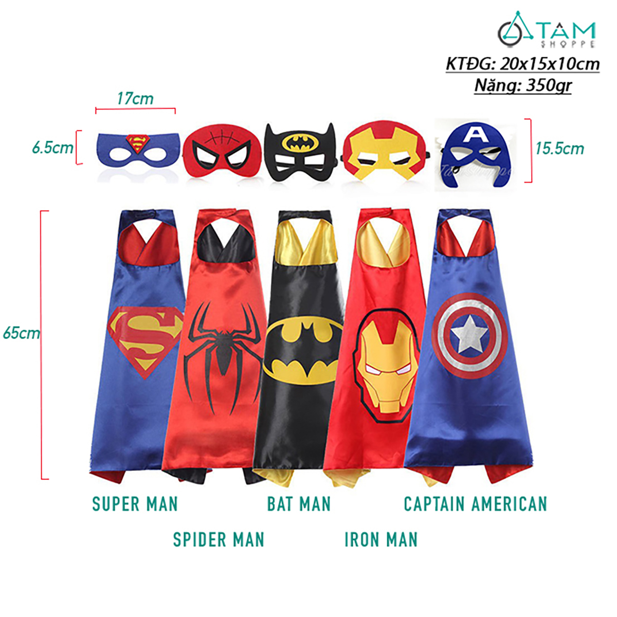 Set áo choàng + mặt nạ nỉ hoá trang siêu anh hùng cho bé [Vải 2 lớp - Nhiều kiểu] hoá trang đẹp mắt.