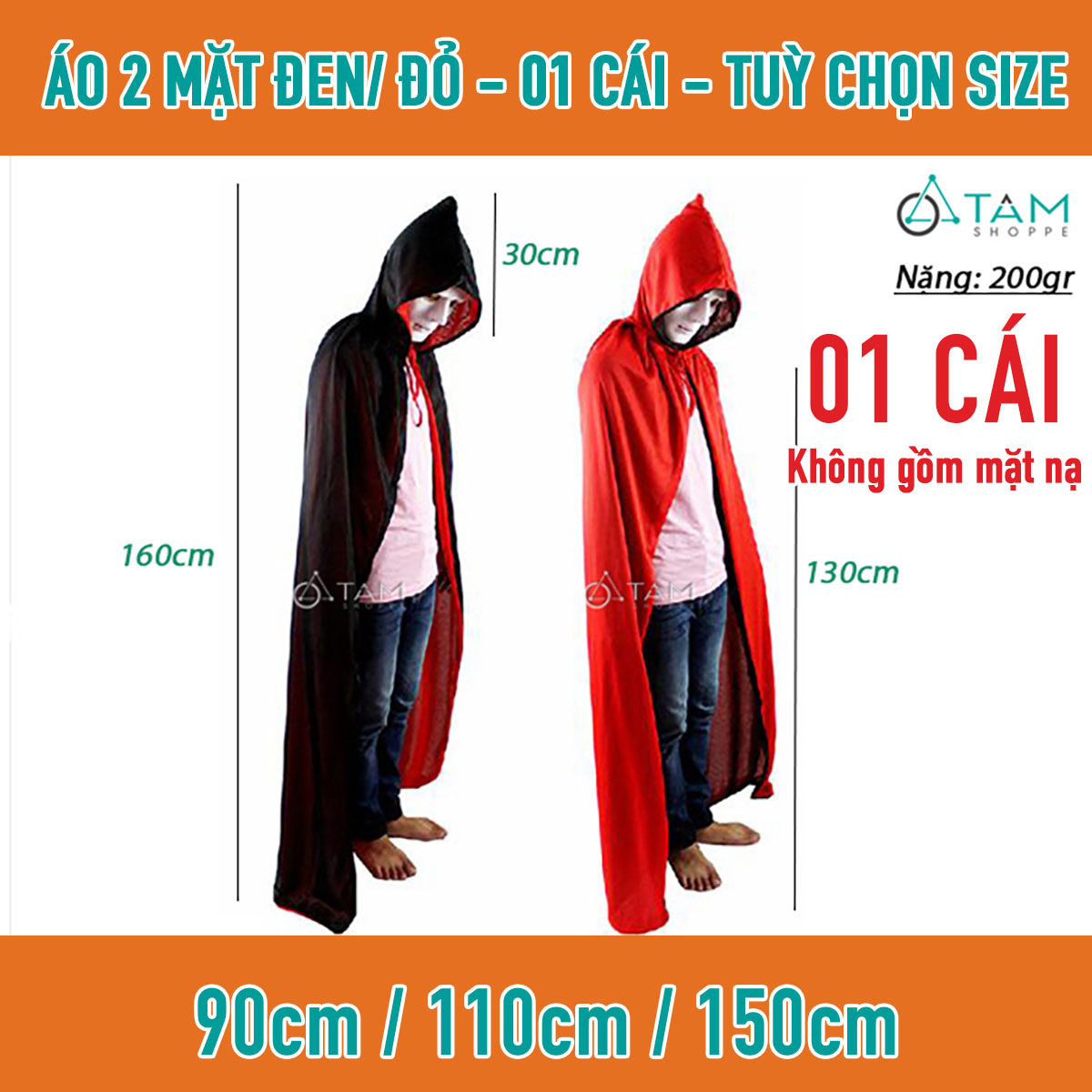 Áo choàng thần chết 2 lớp đen đỏ [Mềm mịn - Size 90/110/150cm] hoá trang đẹp mắt. Đồ hoá trang Halloween là những trang phục, phụ kiện và đạo cụ dùng để biến hoá thành các nhân vật đặc trưng của lễ hội Halloween. Mục đích là tạo vẻ ngoài kỳ bí, rùng rợn hoặc vui nhộn, phù hợp với không khí lễ hội.