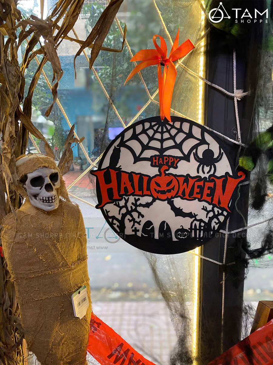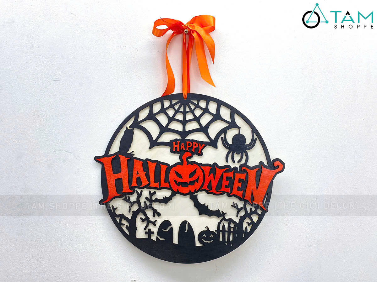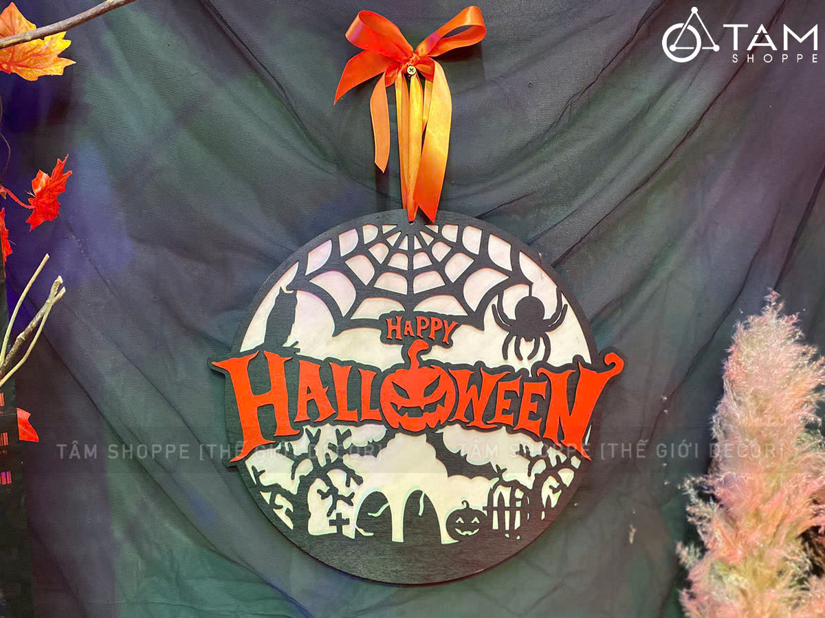 Bảng treo cửa Halloween nghĩa địa đen cam tròn [ĐK35cm - Bằng gỗ] trang trí đẹp mắt. Đồ trang trí Halloween là những vật dụng, mô hình hoặc phụ kiện được dùng để tạo không khí rùng rợn, huyền bí, vui nhộn đặc trưng cho ngày lễ Halloween (31/10).