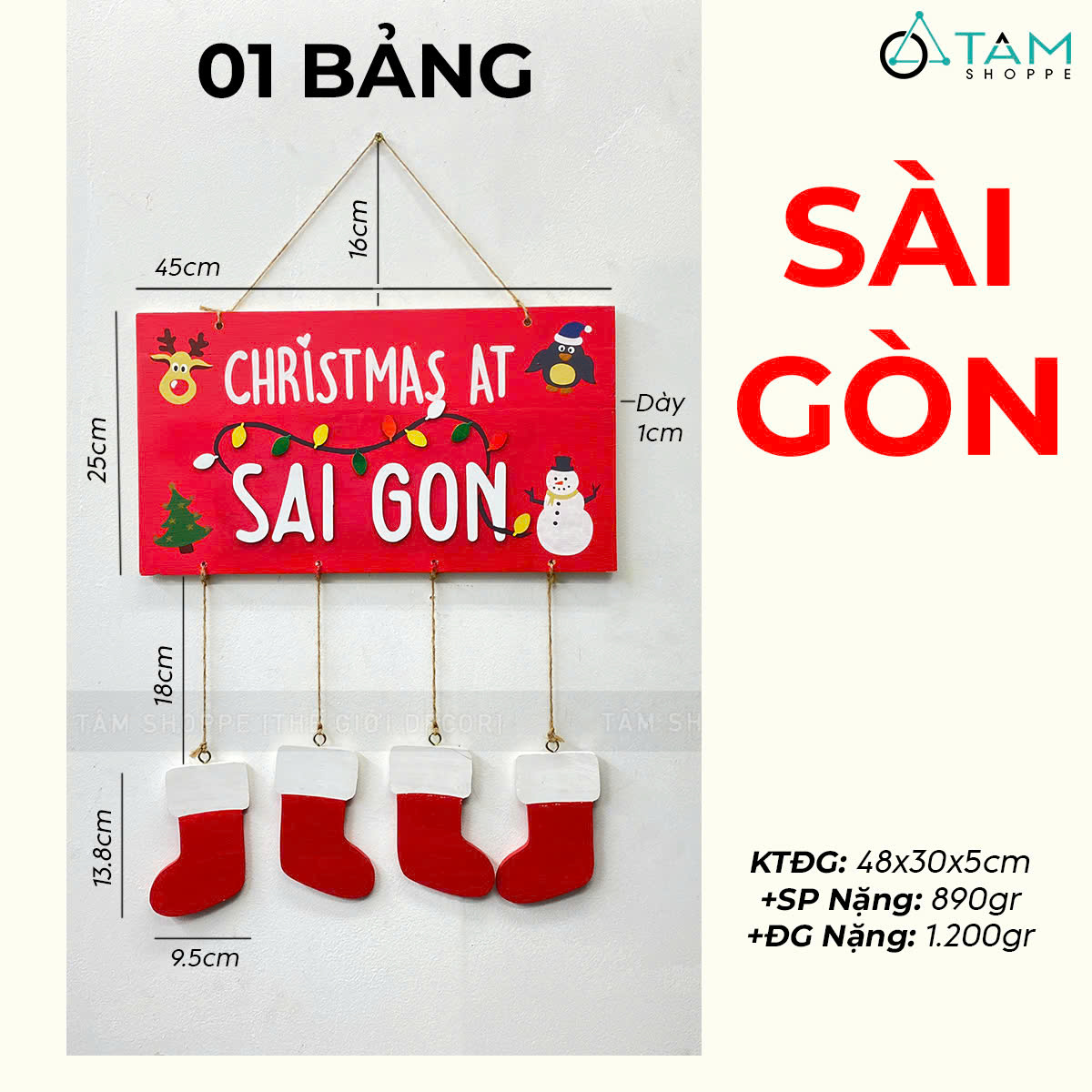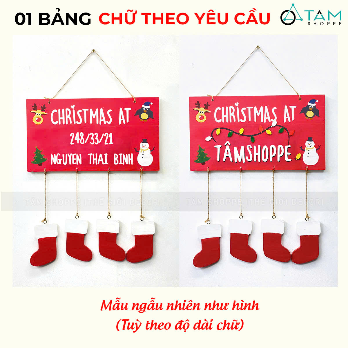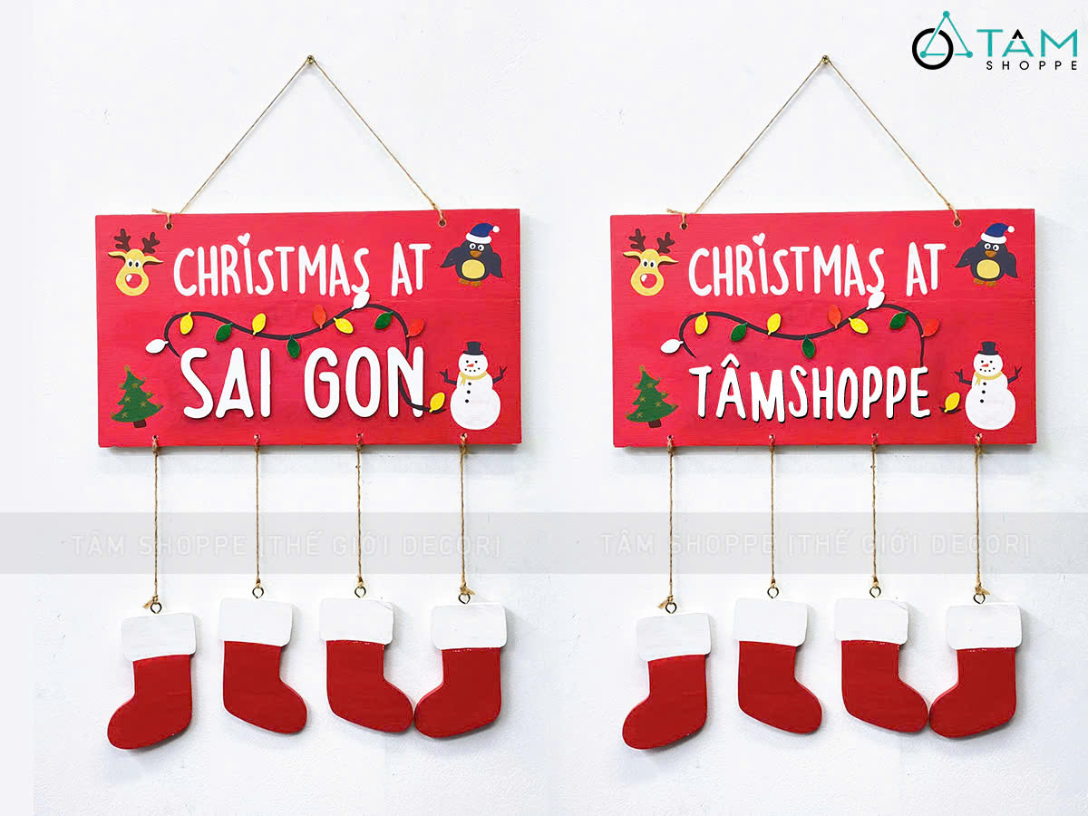 Bảng treo cửa Noel 4 tất đỏ Christmas at... theo yc [Bằng gỗ] [Order 3-5 ngày] trang trí đẹp mắt. Đồ trang trí Noel là các vật dụng, phụ kiện, hoặc mô hình được dùng để trang hoàng không gian trong dịp Giáng Sinh (Noel), nhằm tạo nên không khí ấm áp, vui tươi và mang đậm sắc màu lễ hội.