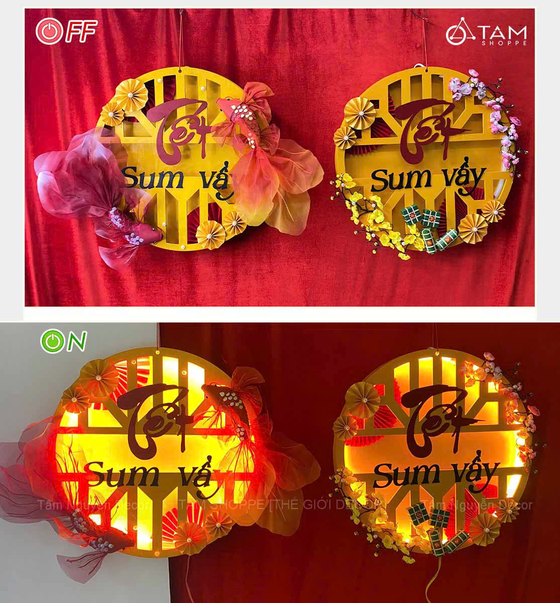 [Order 3 - 5 ngày] Bảng treo Tết Sum Vầy đèn Led [Bằng gỗ - Cắm điện] ĐK 60cm trang trí đẹp mắt