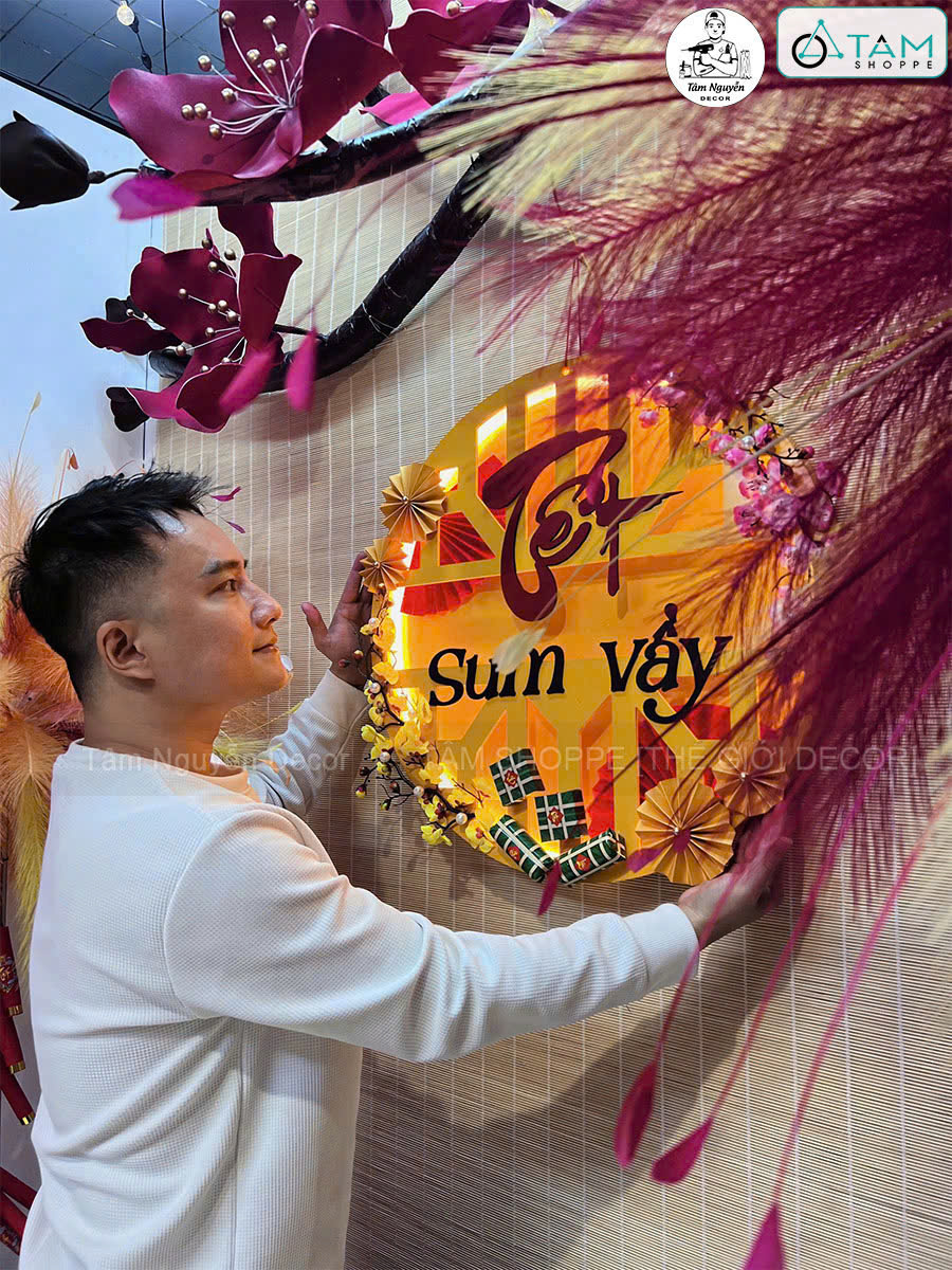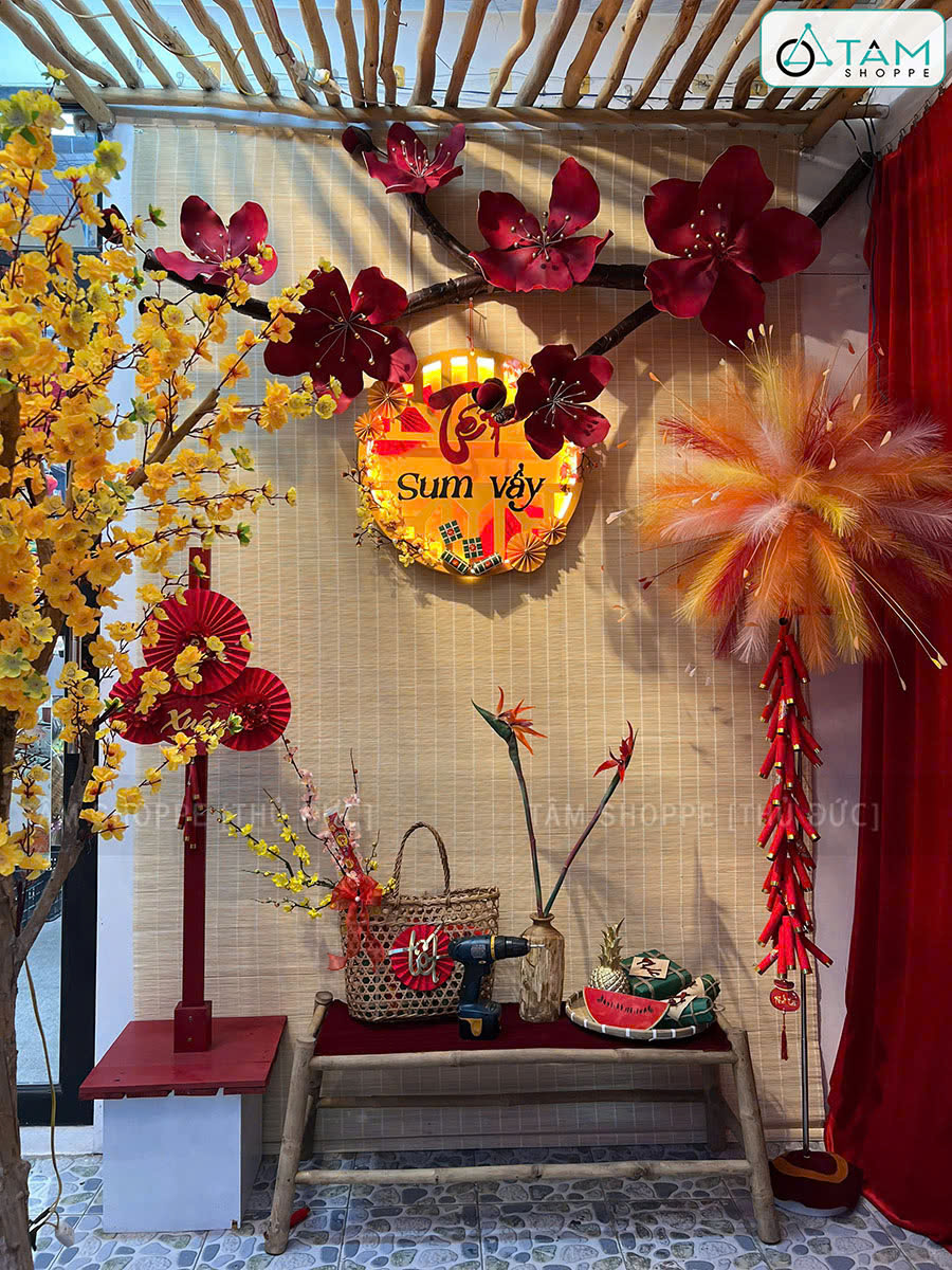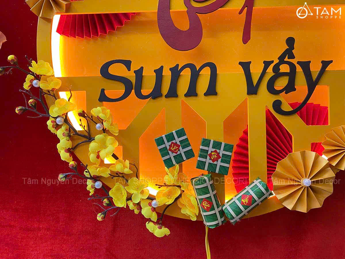 [Order 3 - 5 ngày] Bảng treo Tết Sum Vầy đèn Led [Bằng gỗ - Cắm điện] ĐK 60cm trang trí đẹp mắt. Đồ trang trí Tết là các vật dụng, phụ kiện, hoặc mô hình được dùng để trang hoàng không gian trong dịp lễ, nhằm tạo nên không khí ấm áp, vui tươi và mang đậm sắc màu lễ hội.