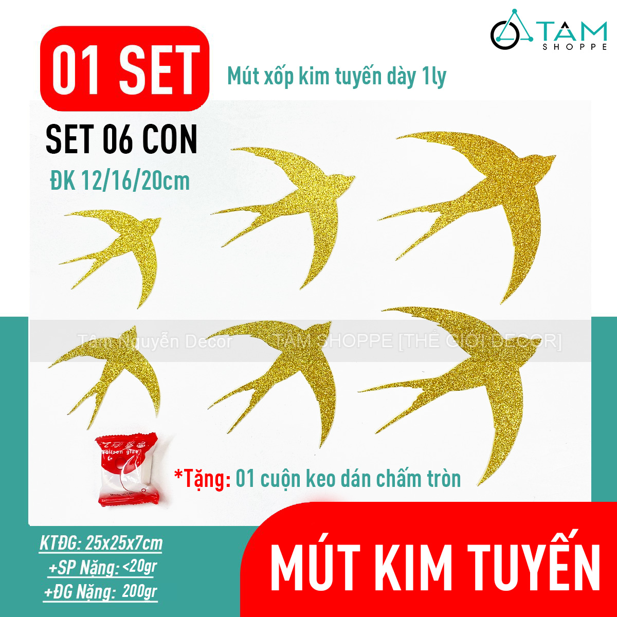 - Chim én mút xốp kim tuyến dày 1mm