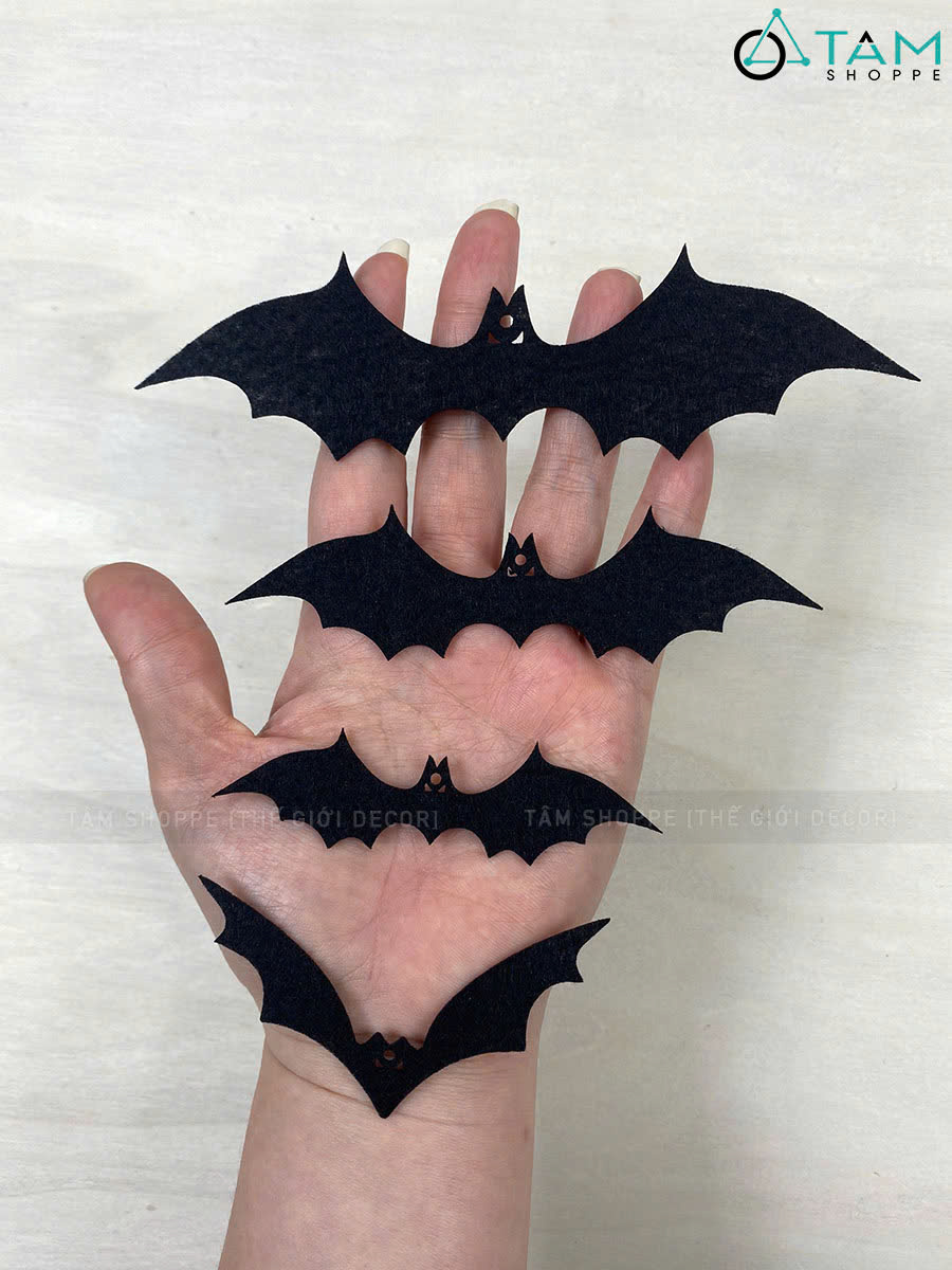 Bầy dơi nỉ đen trang trí [Dán tường/ treo - Tặng kèm dây] trang trí đẹp mắt. Mô hình con vật là một trong những vật dụng decor sinh động và được ưa chuộng nhất. Tượng mô phỏng hình các con vật đa dạng phong phú; có loại dễ thương để decor tiểu cảnh sân vườn; cũng có loại mang tính chất hù doạ khiến bạn phải rùng mình, đặc biệt trong lễ hội Halloween.