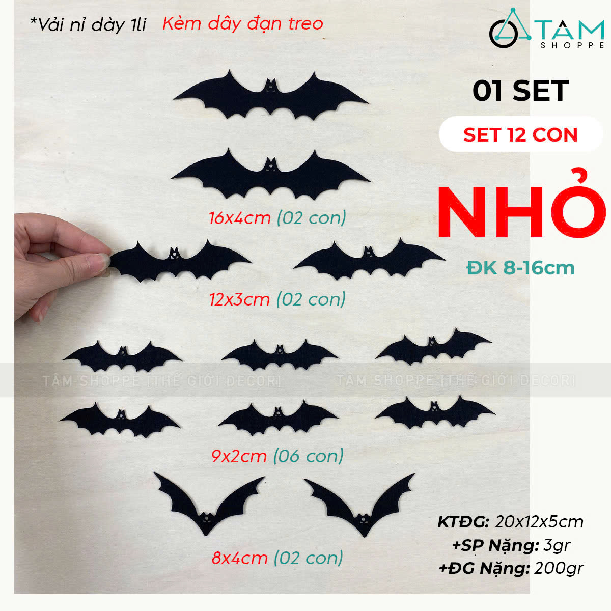 Bầy dơi nỉ đen trang trí [Dán tường/ treo - Tặng kèm dây] trang trí đẹp mắt...