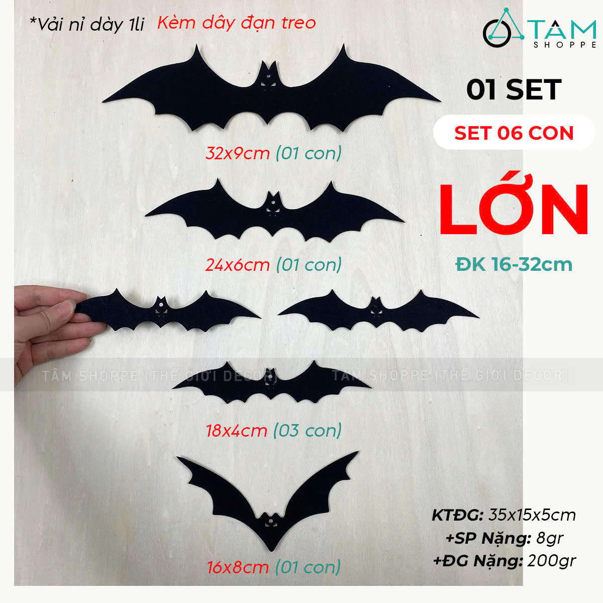 - Con dơi làm bằng chất liệu gỗ ván ép plywood, sơn đen 2 mặt, có lỗ để xỏ dây treo.