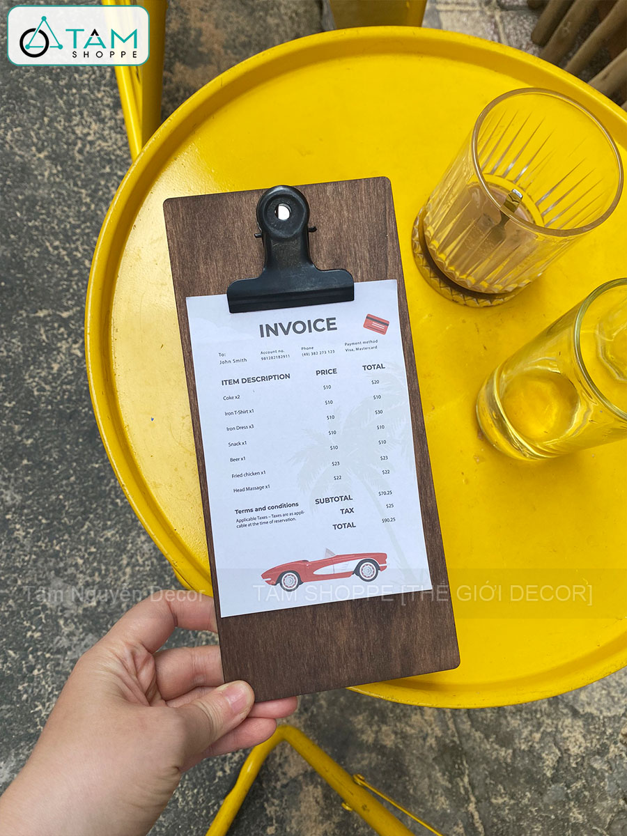 Bìa kẹp Bill gỗ giấy A6 [Dày dặn - Chuẩn đẹp] trang trí đẹp mắt. Bìa kẹp bill không chỉ là một vật dụng đơn thuần mà còn đóng vai trò quan trọng trong việc xây dựng hình ảnh và trải nghiệm khách hàng. Đây còn là món đồ decor trang trí giúp quầy bar, quầy order thêm đẹp mắt và ấn tượng.