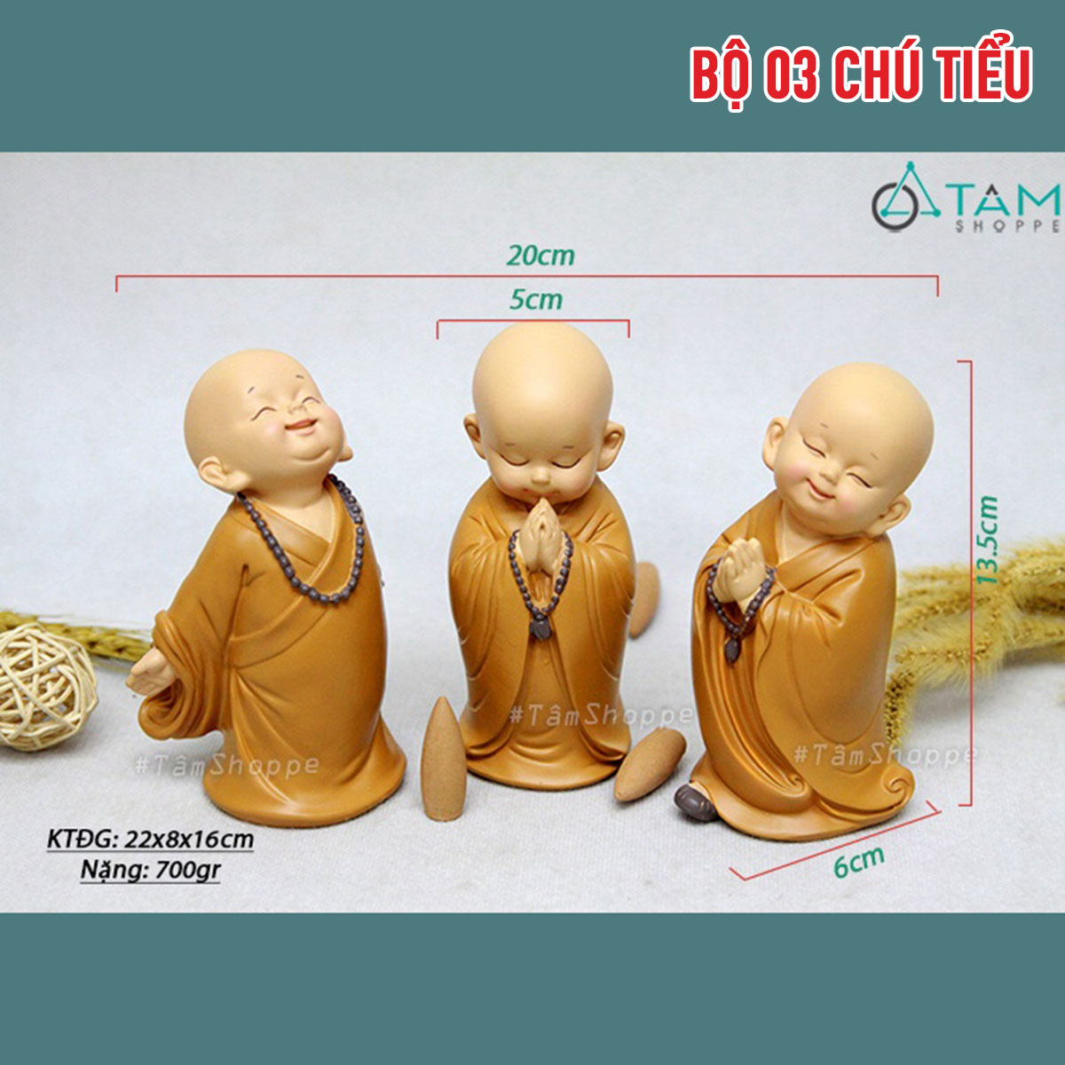 Sản phẩm gồm: 01 Bộ 3 chú tiểu, tuỳ chọn theo phân loại. Không gồm phụ kiện phối cảnh chụp ảnh khác
