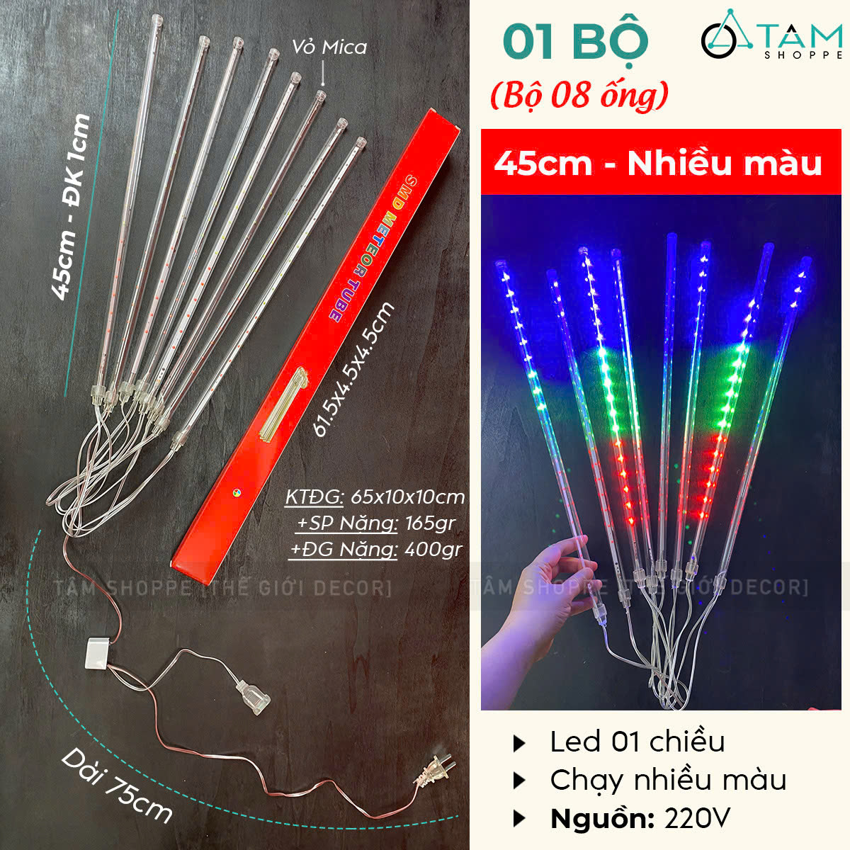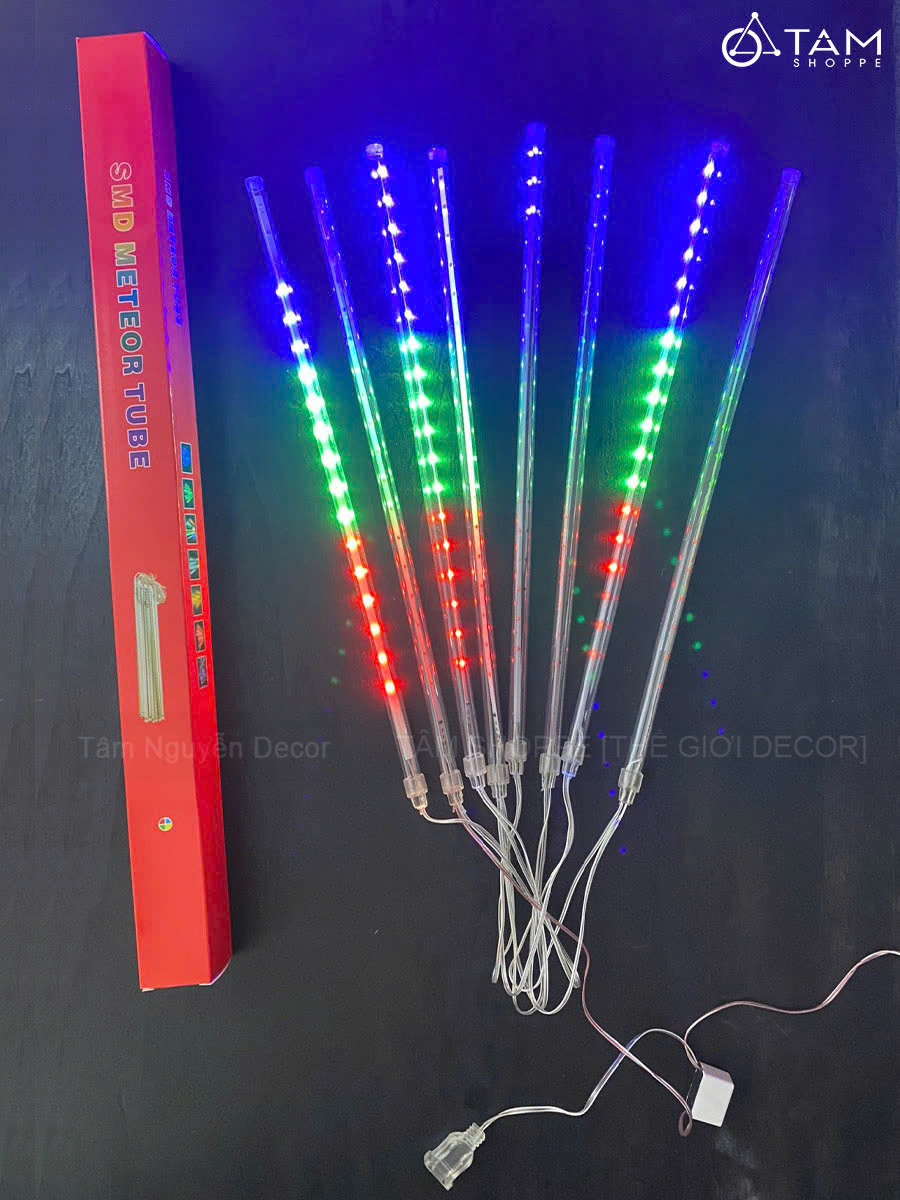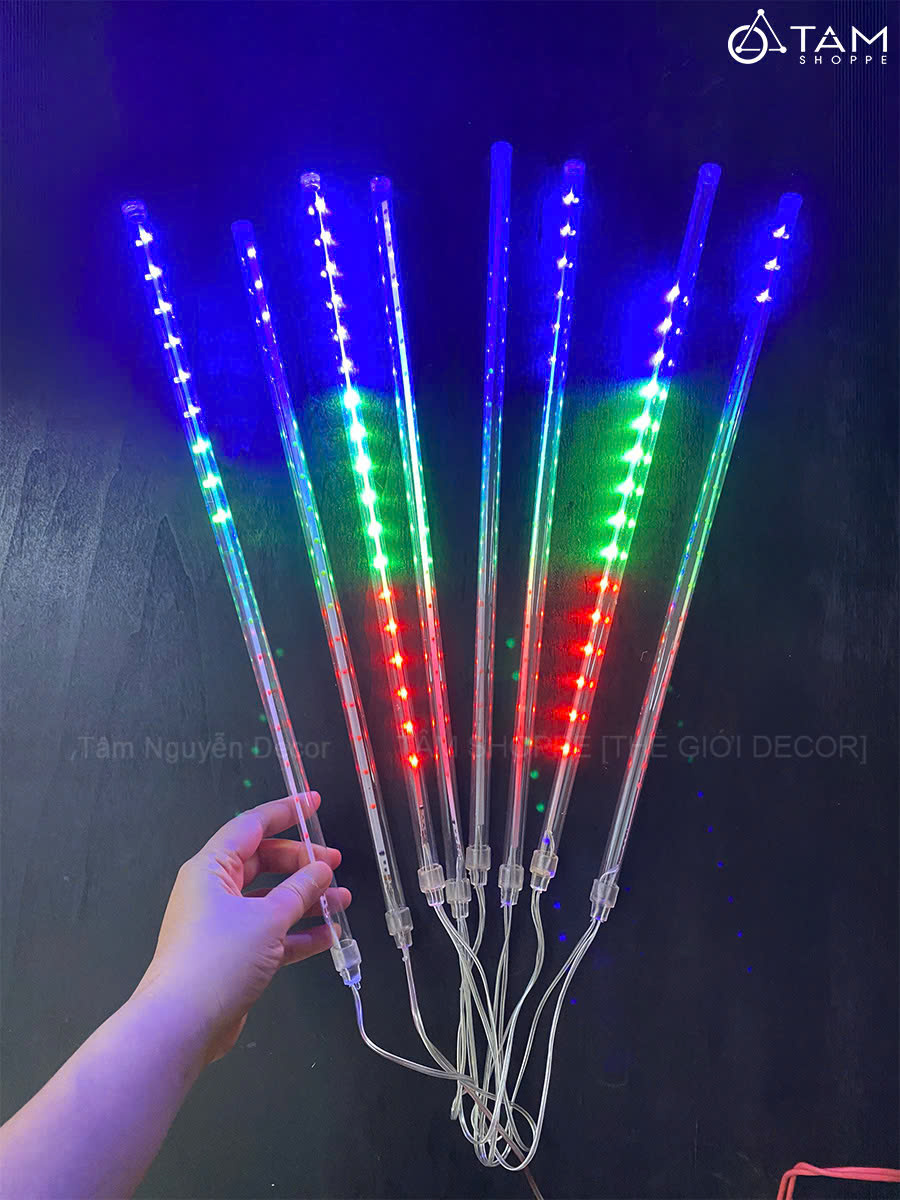 Bộ 08 ống đèn Led sao băng nhiều màu (Led 1 chiều - Cắm điện) D45cm trang trí đẹp mắt