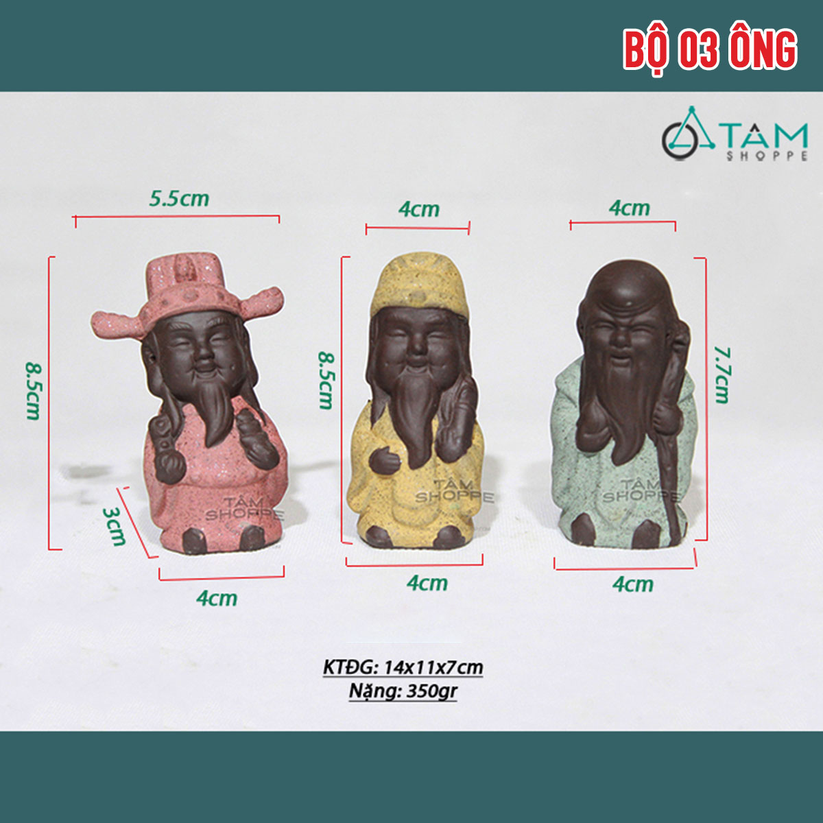 Sản phẩm gồm 01 Bộ 3 tượng theo tuỳ chọn phân loại, có chú thích rõ trên hình.