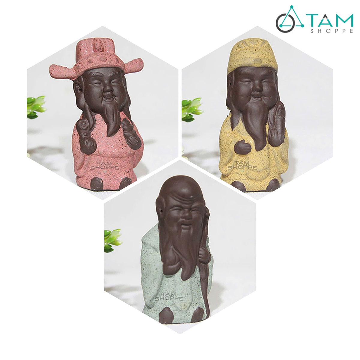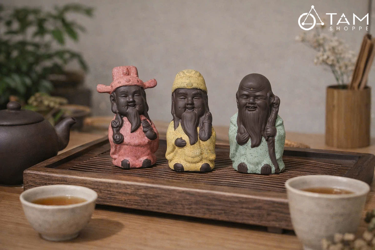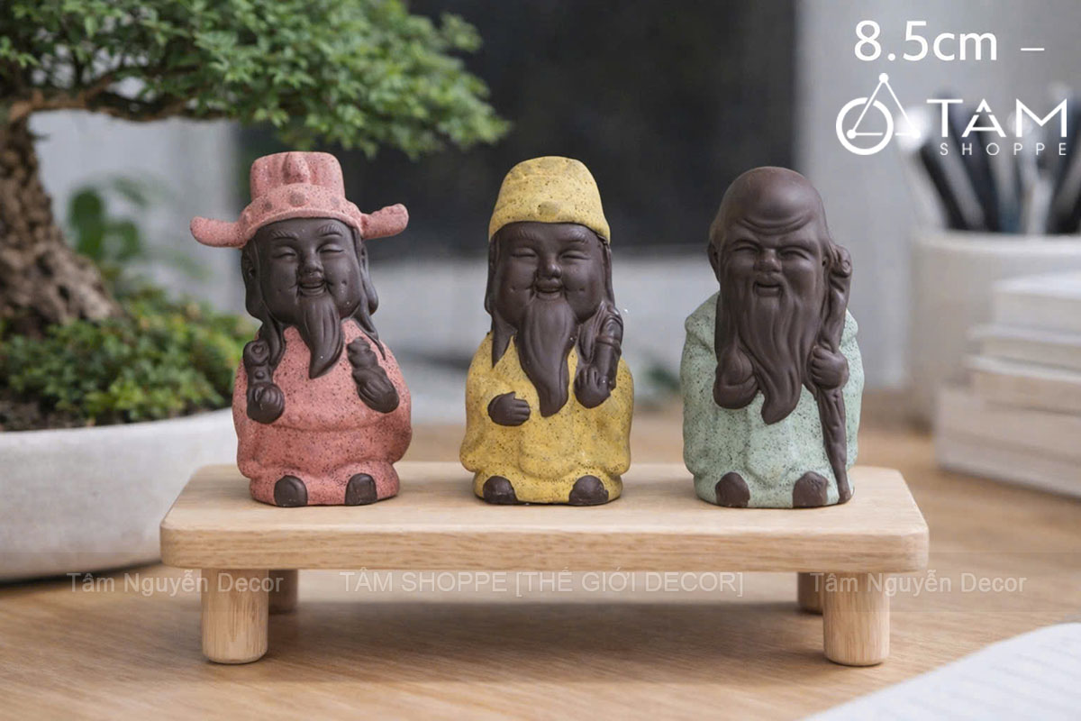 Bộ 3 tượng ông Phúc - Lộc - Thọ mini gốm nâu [Cao 8.5cm/ trầm ấm] trang trí đẹp mắt. Mang vẻ đẹp thanh tịnh và trang nghiêm, tượng Phật để bàn không chỉ là món đồ trang trí tinh tế mà còn là biểu tượng của sự bình yên, thư thái trong tâm hồn.