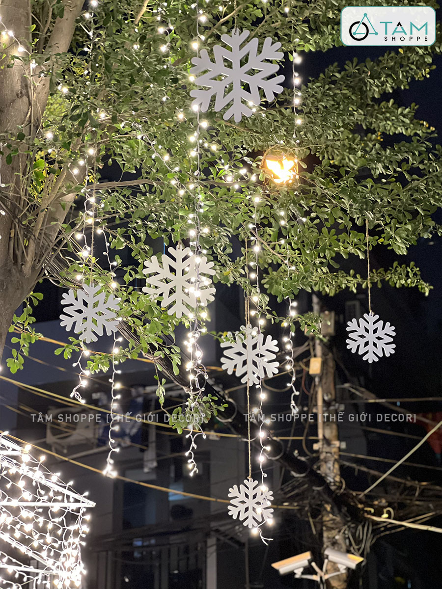 Treo bông tuyết thả trần nhà, cửa sổ hoặc trang trí trên cây thông Noel cùng trái châu, phụ kiện khác