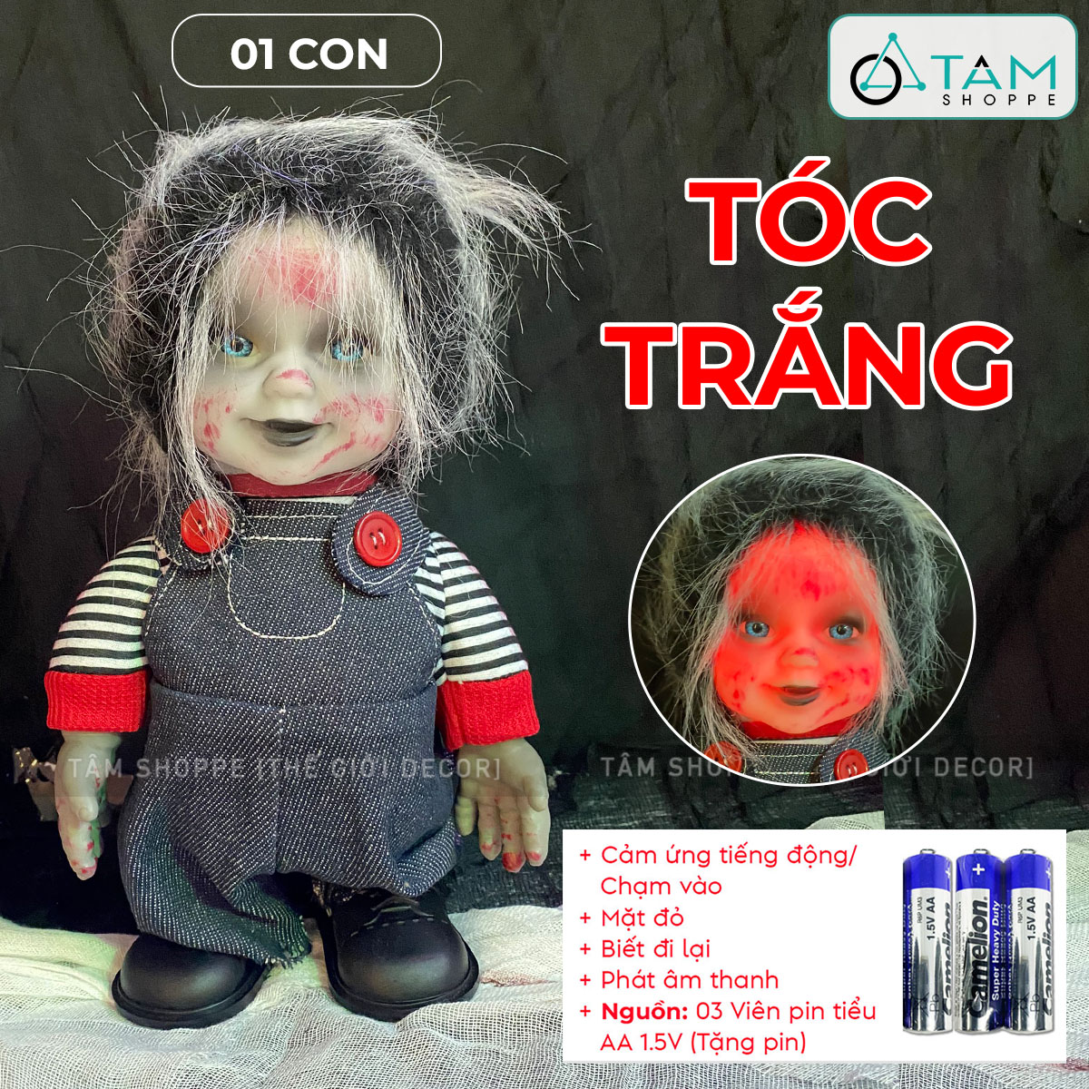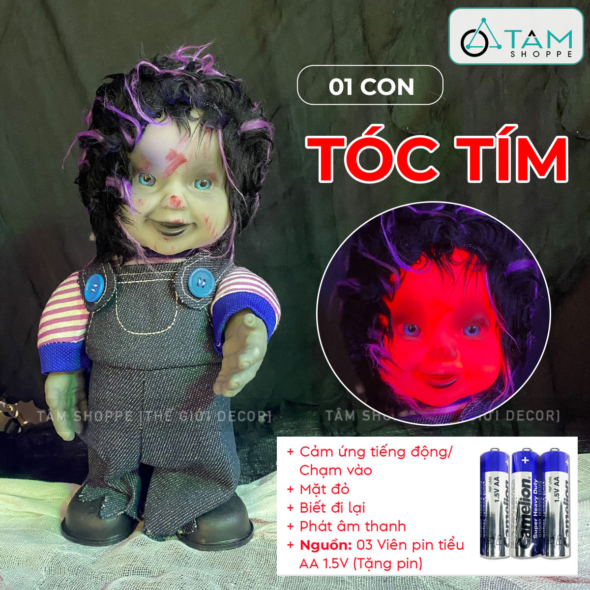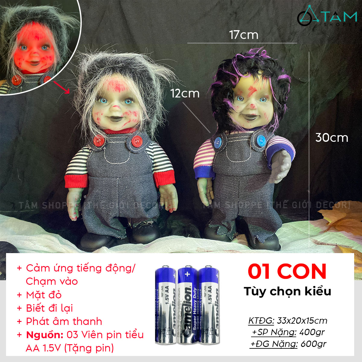 Búp bê Halloween điện tử biết đi biết nói (cảm ứng tiếng động - tặng Pin) trang trí hù doạ kinh dị...