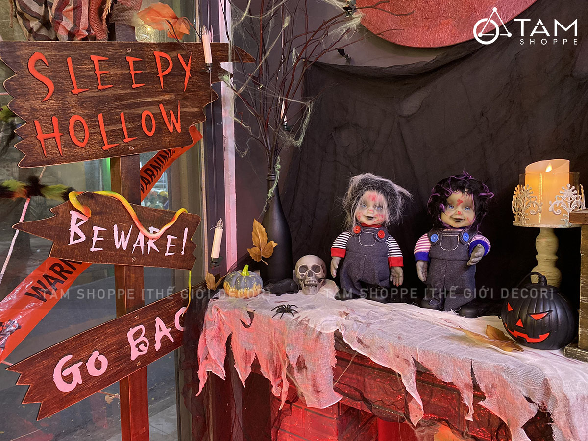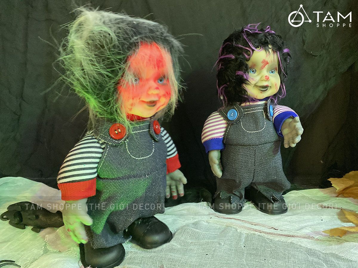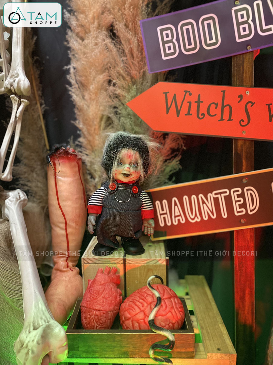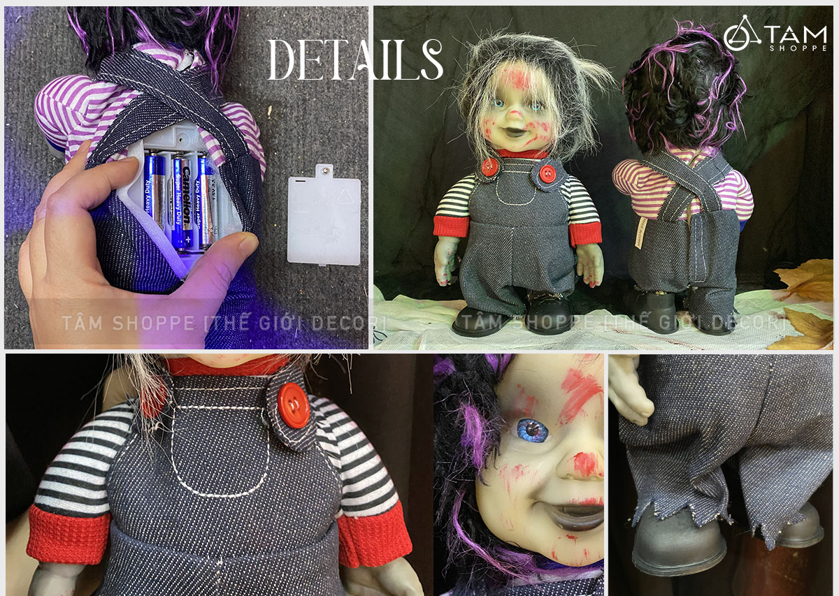 Búp bê Halloween điện tử biết đi biết nói (cảm ứng tiếng động - tặng Pin) trang trí hù doạ kinh dị. Halloween được biết đến như một lễ hội của ma quỷ, thế giới hắc ám. Những món đồ trang trí Halloween rùng rợn, kinh dị lại càng được yêu thích. Các quán cafe hay Shop bán hàng muốn tạo điểm nhấn thu hút đối với khách thì Halloween là dịp đặc biệt ấn tượng. Chỉ với một số món đồ trang trí có sẵn, cùng Tâm Shoppe mang không khí lễ hội của quỷ này về nhà mình nhé...