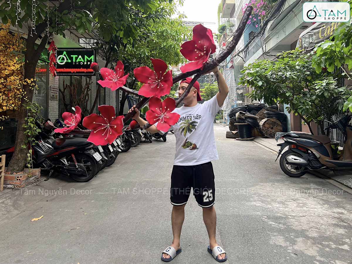 Cành mai đào dài 180cm dáng bonsai cỡ lớn decor cửa sổ, cổng chào, lối ra vào hoặc vách tường...