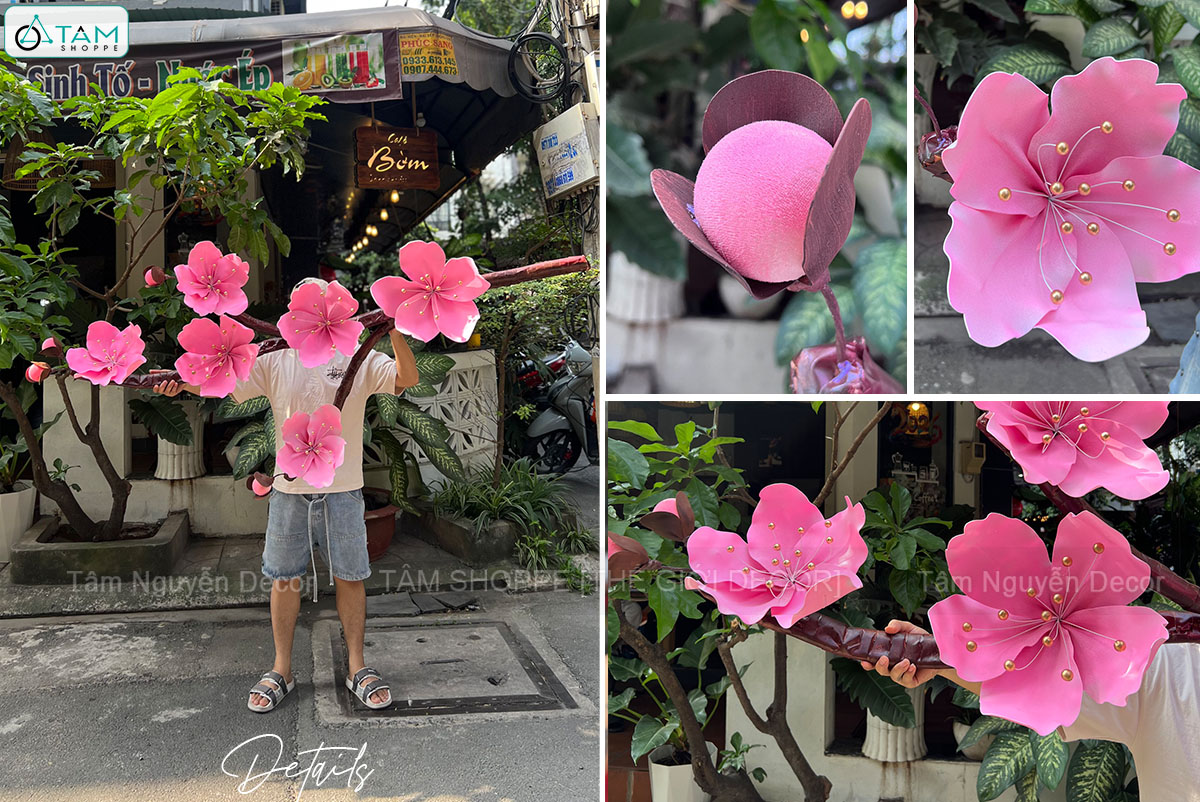 Cành mai đào Bonsai khổng lồ nhiều màu [Thủ công - Nhẹ] D180cm trang trí đẹp mắt