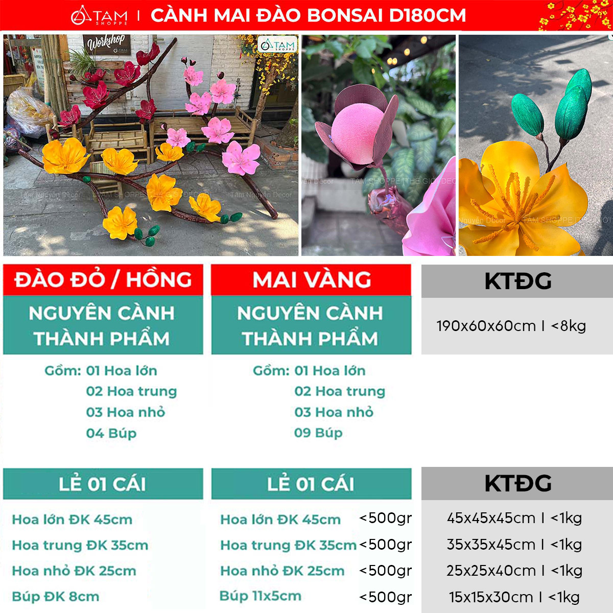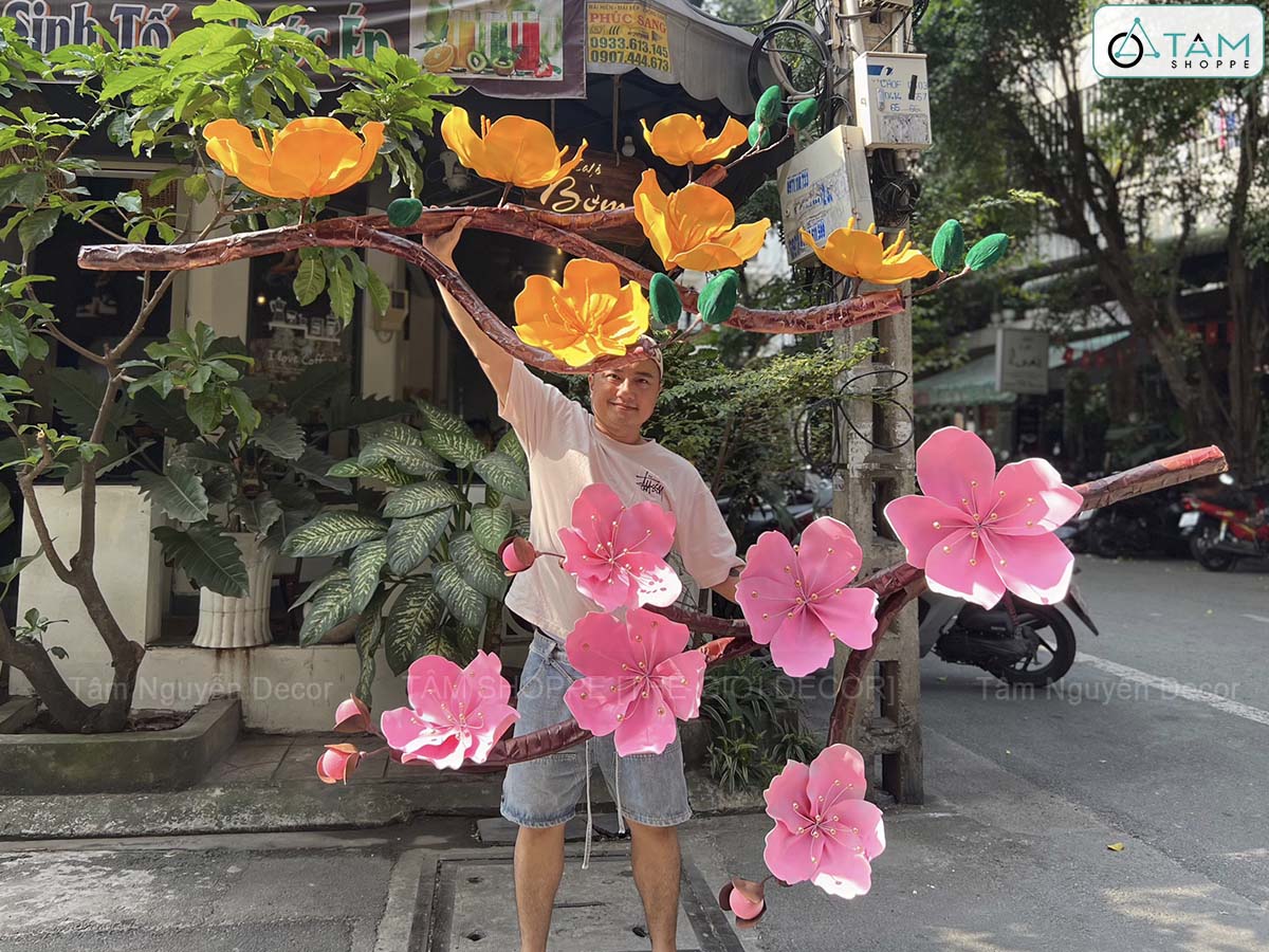 Cành mai đào Bonsai khổng lồ nhiều màu [Thủ công - Nhẹ] D180cm trang trí đẹp mắt. Đồ trang trí Tết là các vật dụng, phụ kiện, hoặc mô hình được dùng để trang hoàng không gian trong dịp Tết, nhằm tạo nên không khí ấm áp, vui tươi và mang đậm sắc màu lễ hội.