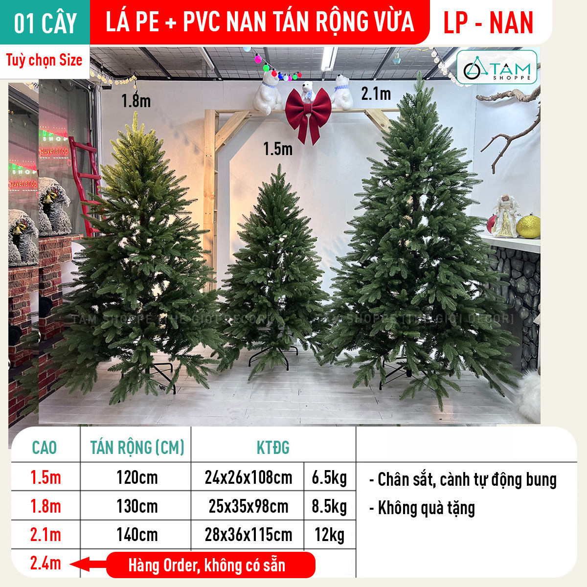 Cây thông Noel lá PE+PVC tán vừa [Cao 1m5-2m] trang trí đẹp mắt. Đồ trang trí Noel là các vật dụng, phụ kiện, hoặc mô hình được dùng để trang hoàng không gian trong dịp Giáng Sinh (Noel), nhằm tạo nên không khí ấm áp, vui tươi và mang đậm sắc màu lễ hội.