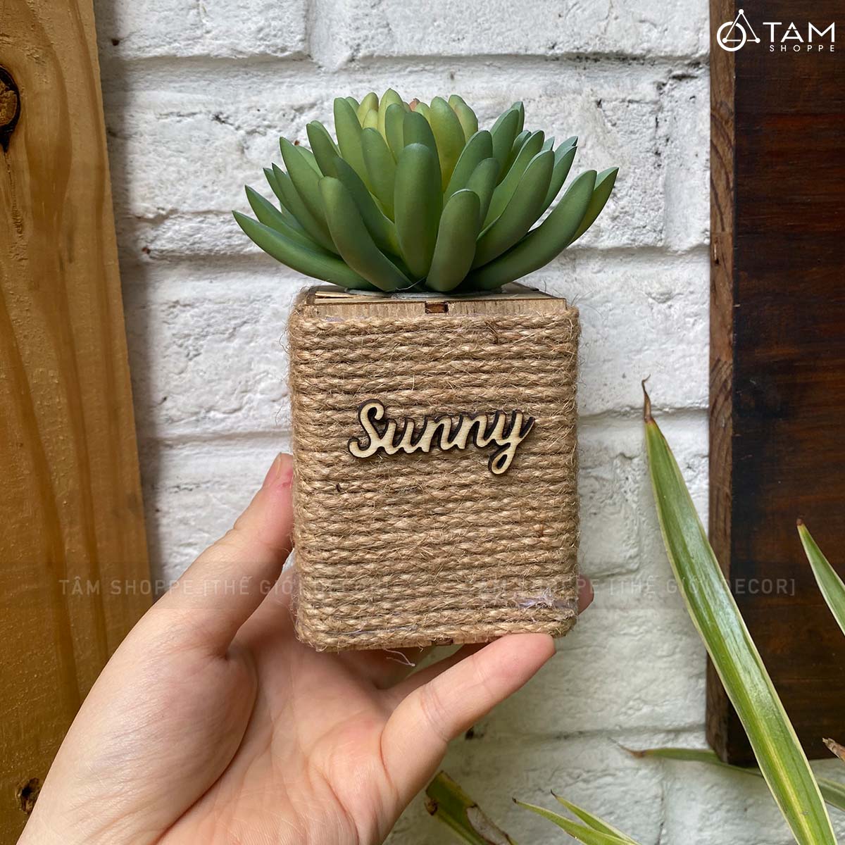 Chậu sen đá vuông quấn dây thừng để bàn [Nhiều kiểu] trang trí đẹp mắt.