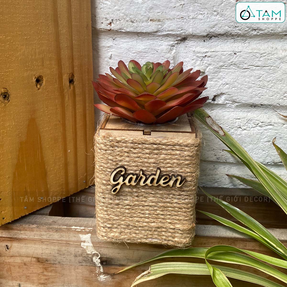 Chậu sen đá vuông quấn dây thừng để bàn [Nhiều kiểu] trang trí đẹp mắt. Đồ trang trí để bàn là các vật dụng, phụ kiện, hoặc mô hình được dùng để trang trí nhà cửa, góc học tập và làm việc, tạo không gian ấm áp, sinh động, tạo cảm giác dễ chịu và hứng khởi học tập, làm việc.