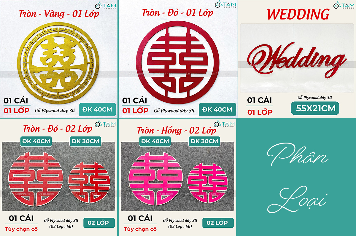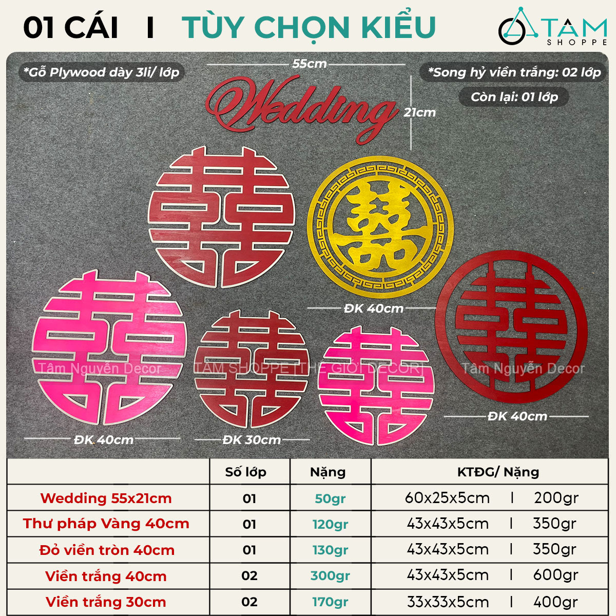 Chữ gỗ Song Hỷ tròn - Wedding nhiều kiểu [Gỗ nhẹ - Sơn thủ công] ĐK 30-40cm trang trí đẹp mắt. Đồ trang trí cưới là các vật dụng, phụ kiện, hoặc mô hình được dùng để trang hoàng không gian trong dịp cưới, nhằm tạo nên không khí ấm áp, vui tươi.