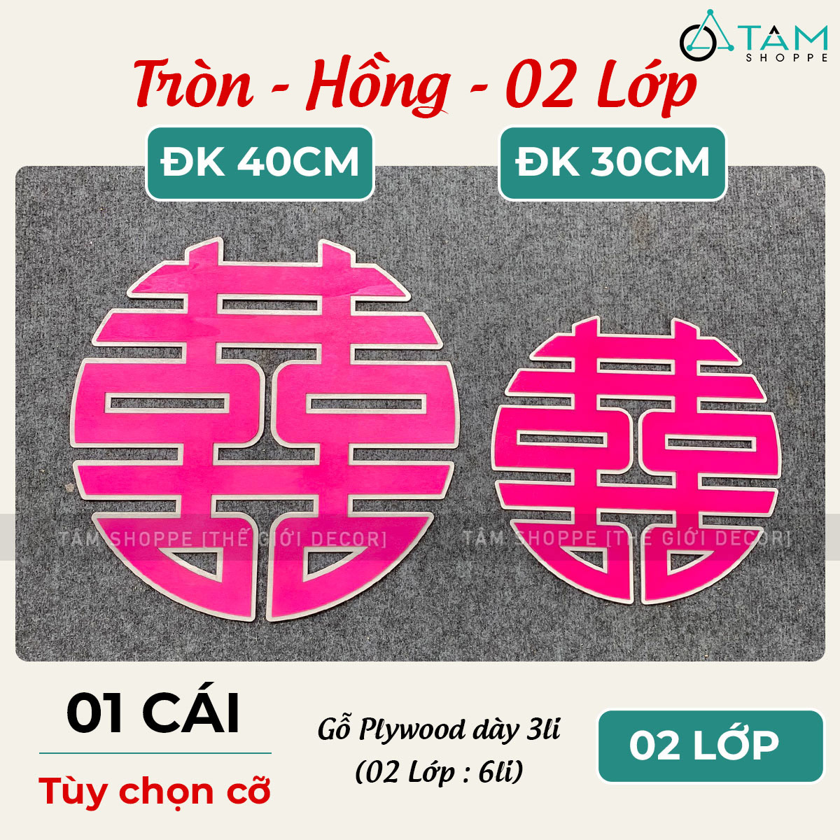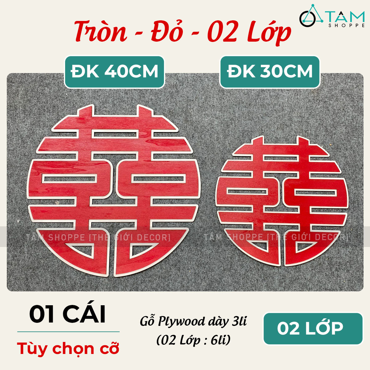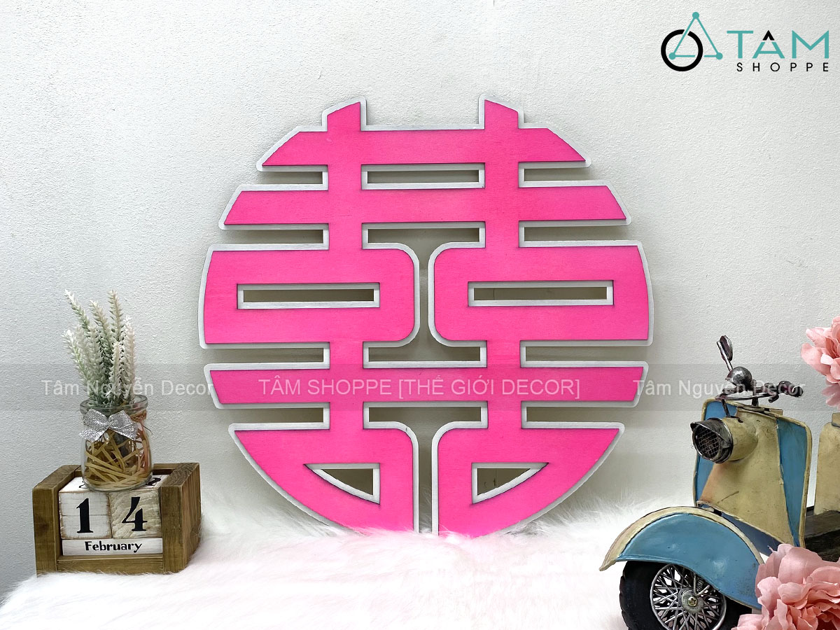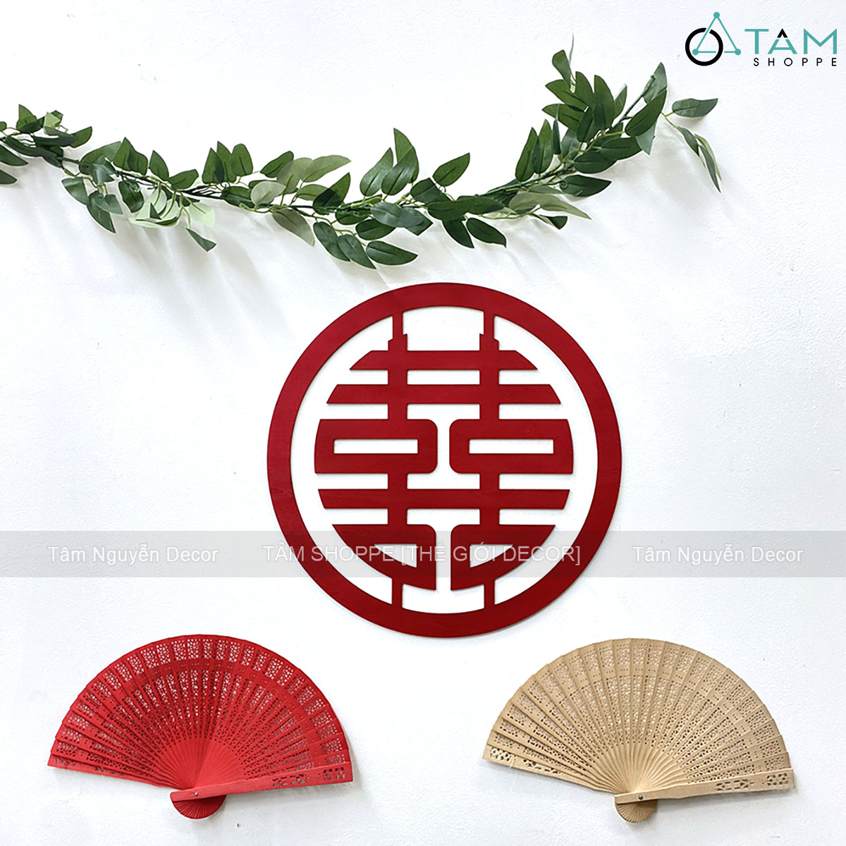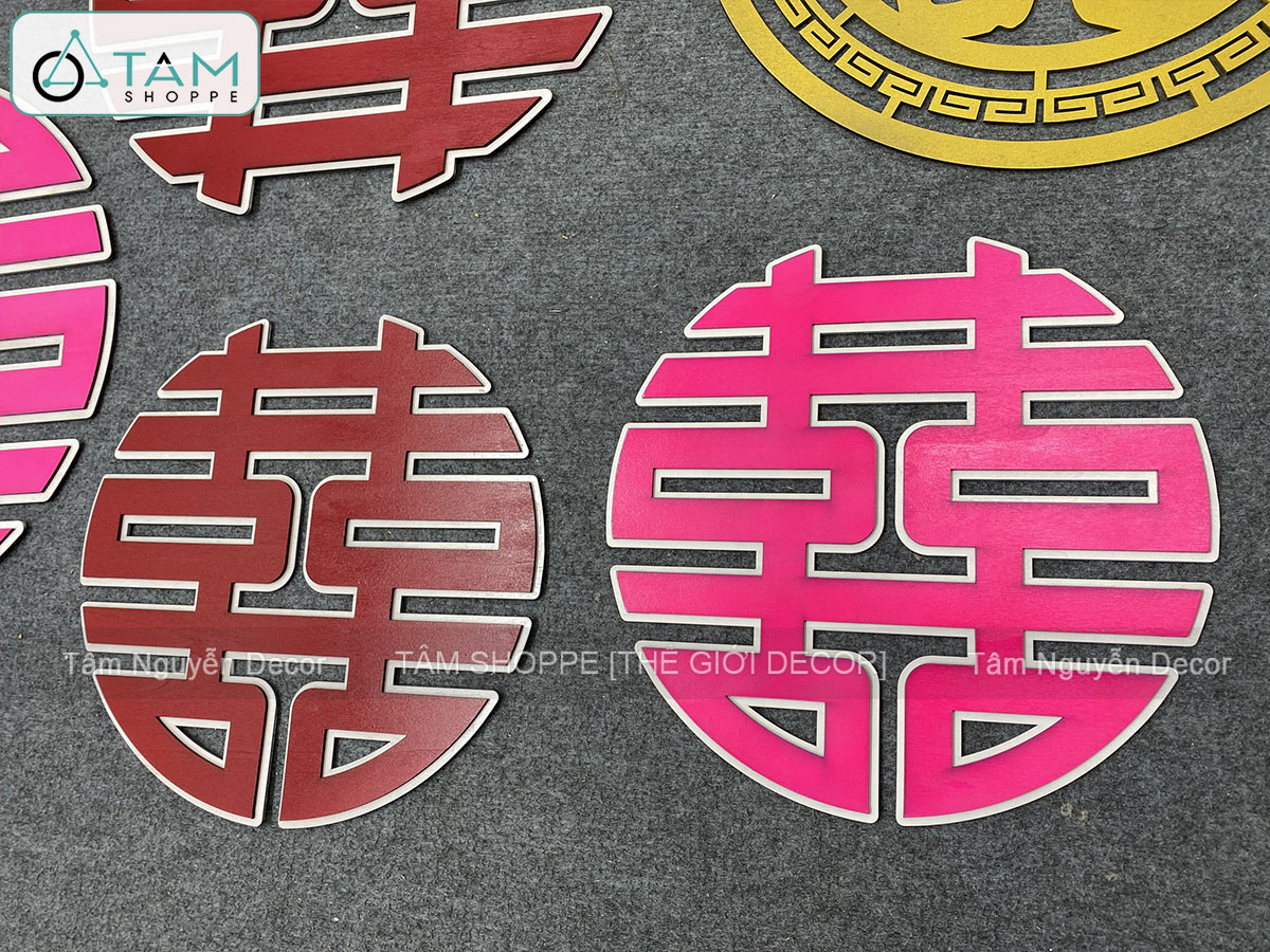 Chữ gỗ Song Hỷ tròn - Wedding nhiều kiểu [Gỗ nhẹ - Sơn thủ công] ĐK 30-40cm trang trí đẹp mắt.