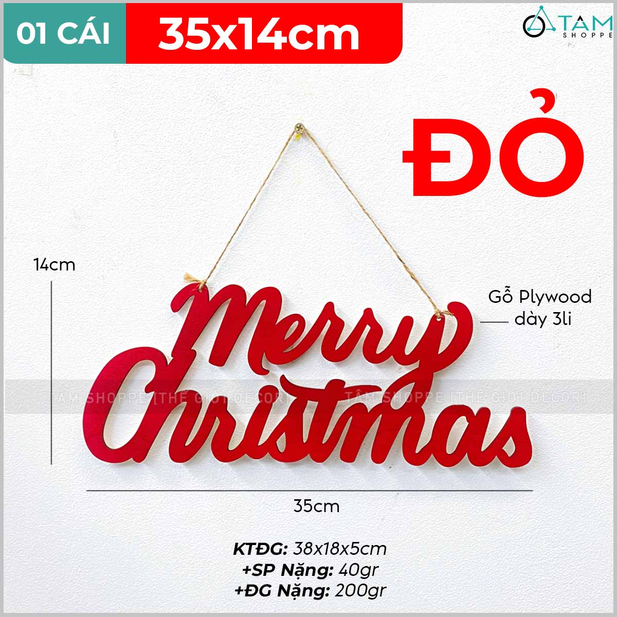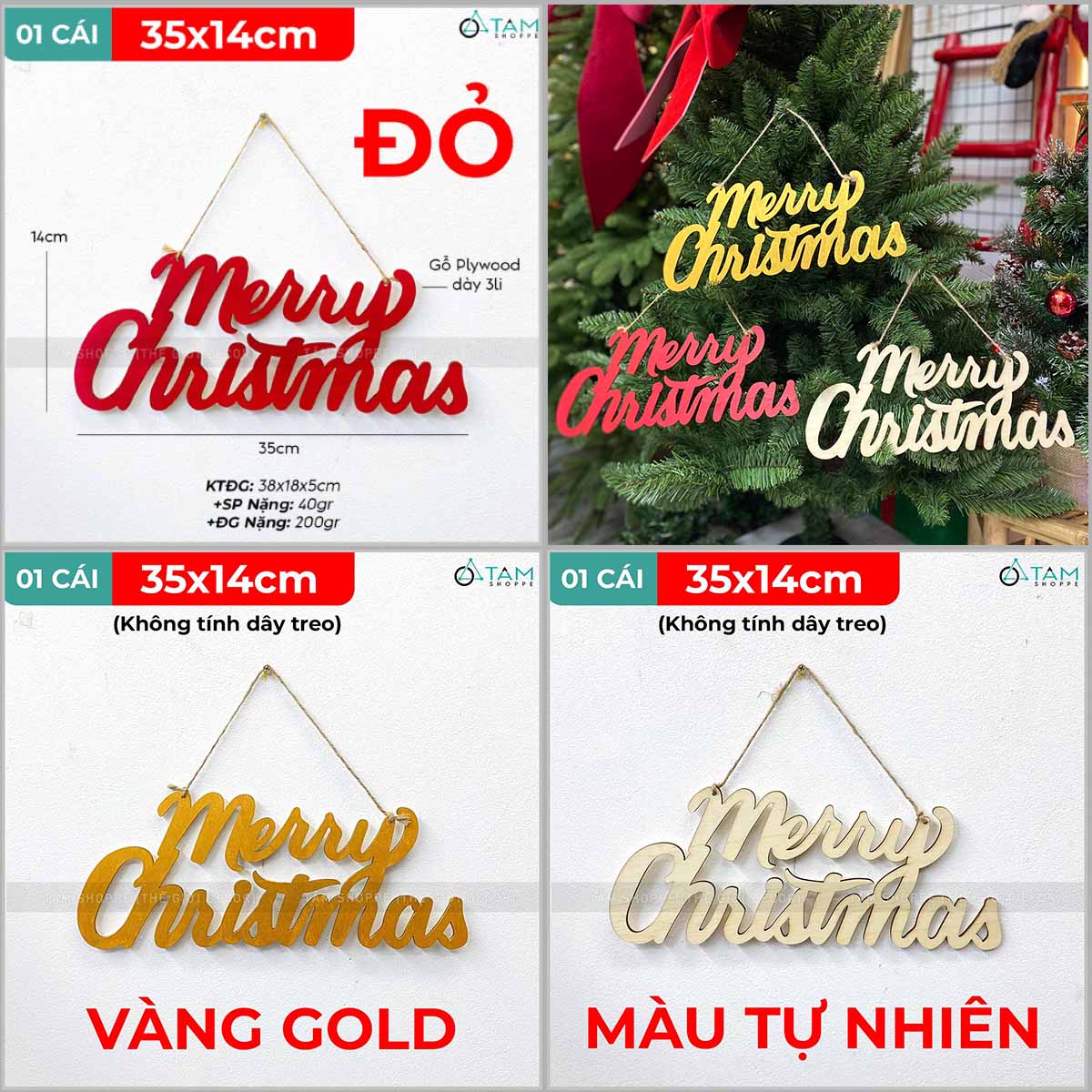 Chữ Merry Christmas 35x14cm [Bằng gỗ - Nhiều màu] trang trí đẹp mắt