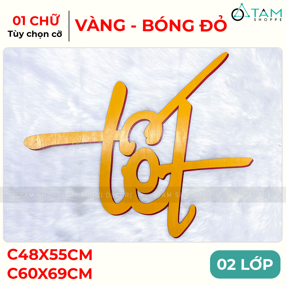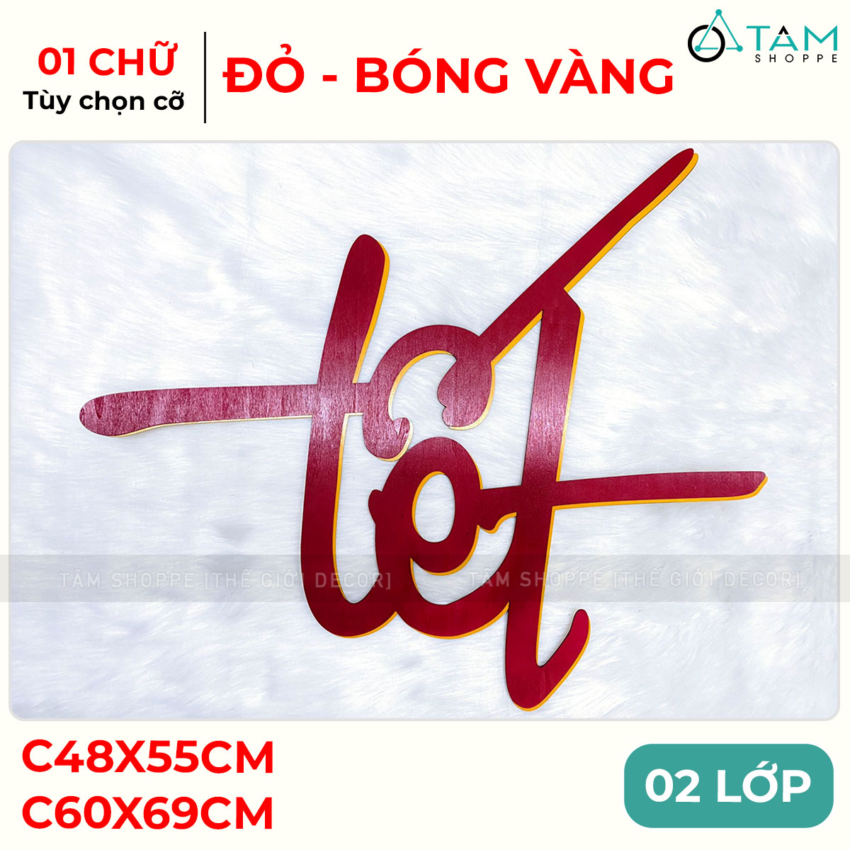 Chữ Tết thư pháp cỡ lớn bằng gỗ 55 - 70cm Kiểu 1 [Gỗ nhẹ - 1 - 2 lớp] trang trí đẹp mắt
