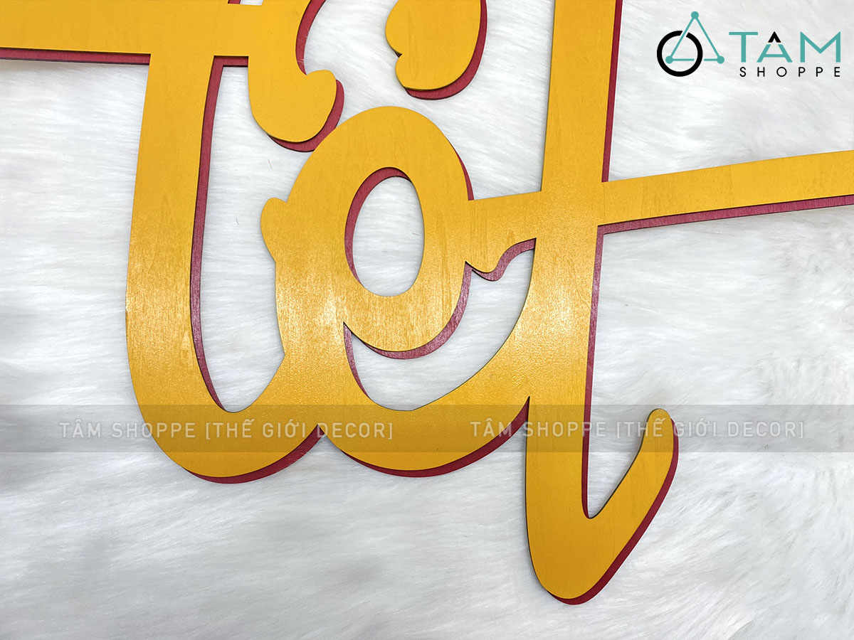 Chữ Tết thư pháp cỡ lớn bằng gỗ 55 - 70cm Kiểu 1 [Gỗ nhẹ - 1 - 2 lớp] trang trí đẹp mắt. Đồ trang trí Tết là các vật dụng, phụ kiện, hoặc mô hình được dùng để trang hoàng không gian trong dịp Tết, nhằm tạo nên không khí ấm áp, vui tươi và mang đậm sắc màu lễ hội.