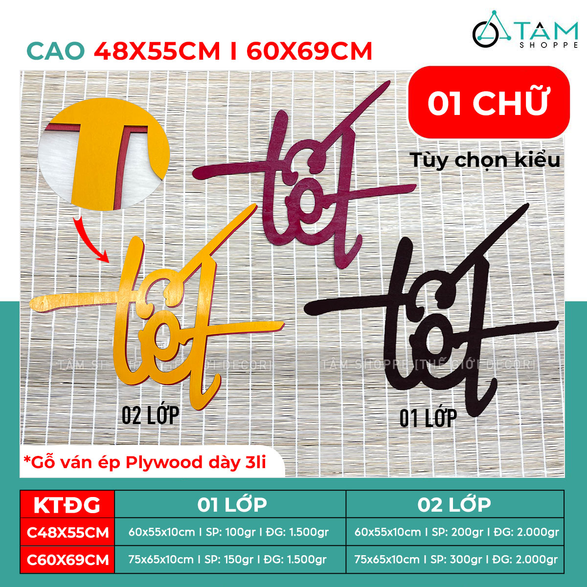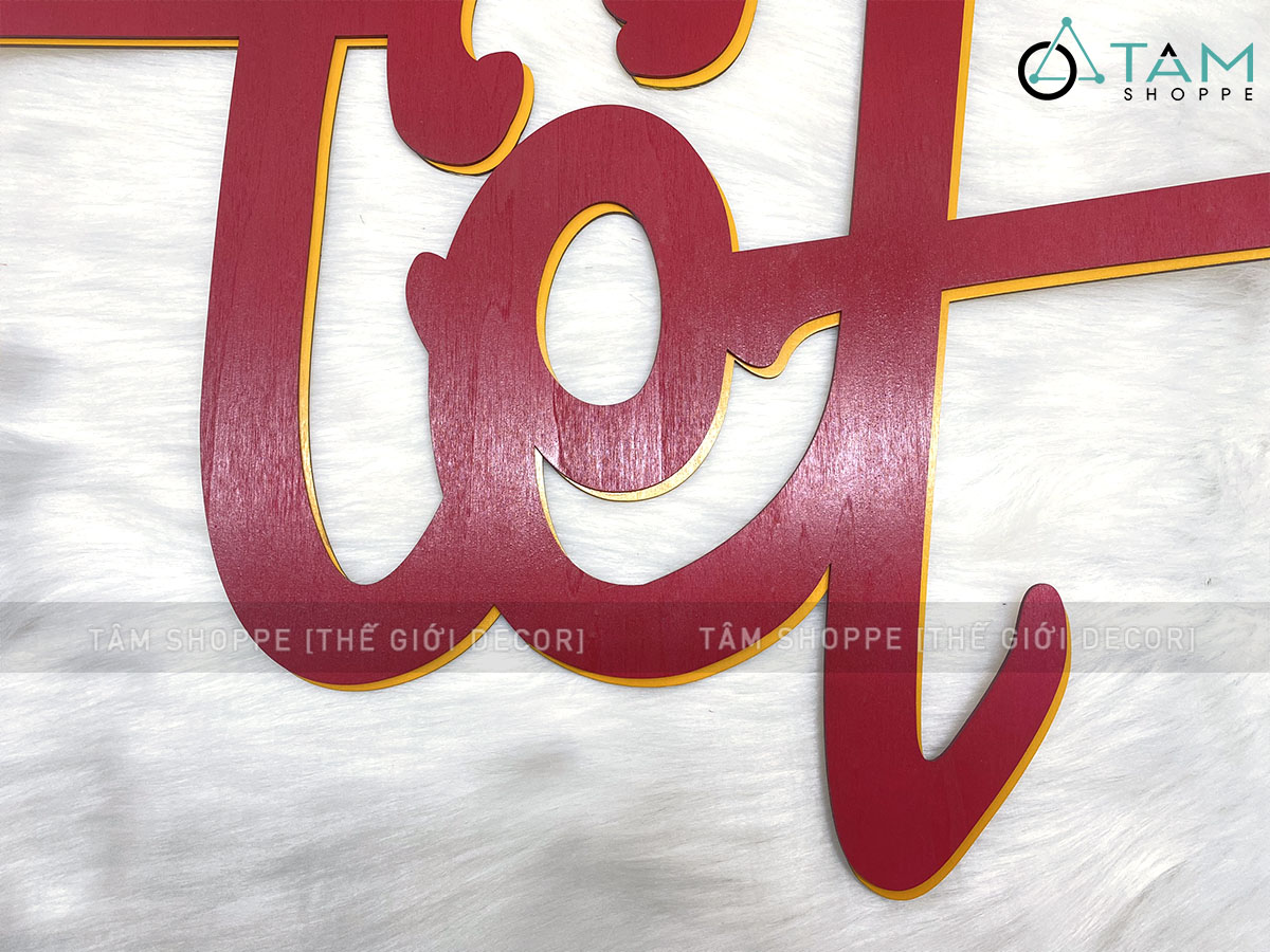 Chữ Tết có 2 cỡ, cỡ Ngang 55cm và Ngang 70-72cm, độ dày gỗ 3mm, là kích thước phổ thông thích hợp trang trí cho các background Tết chụp hình.