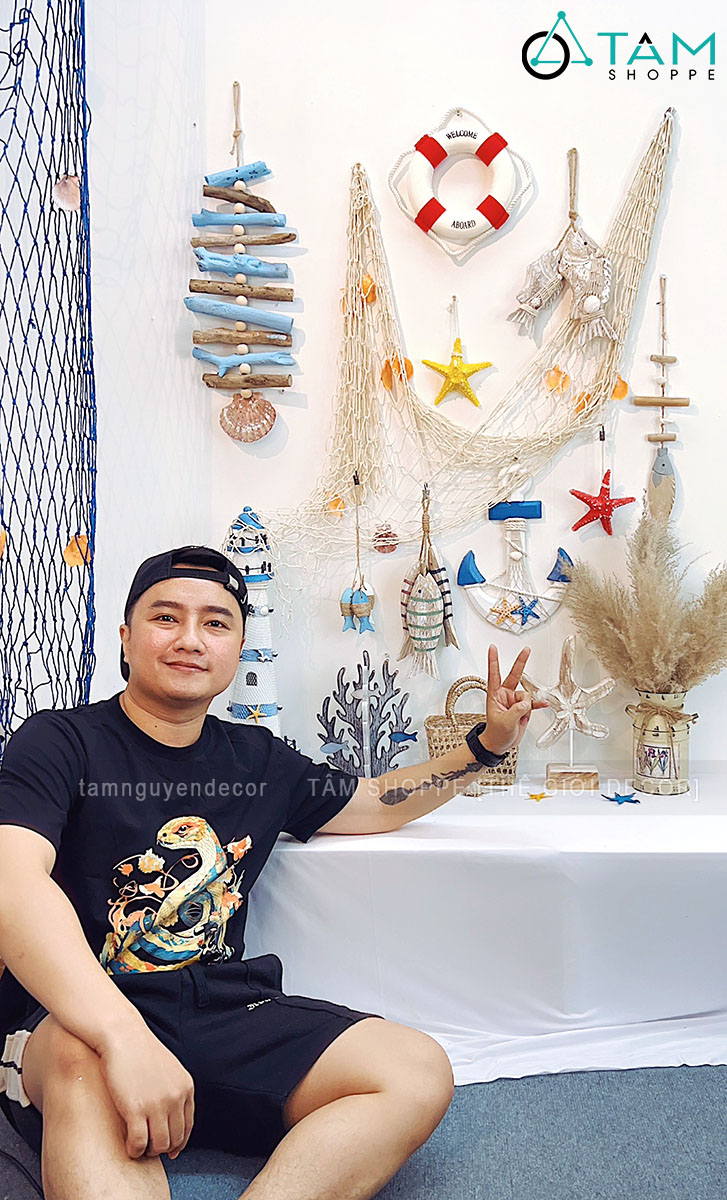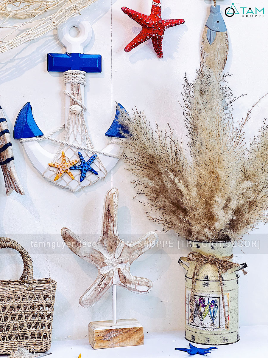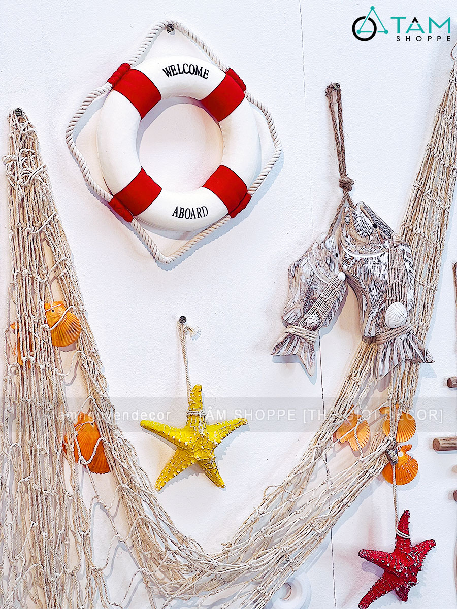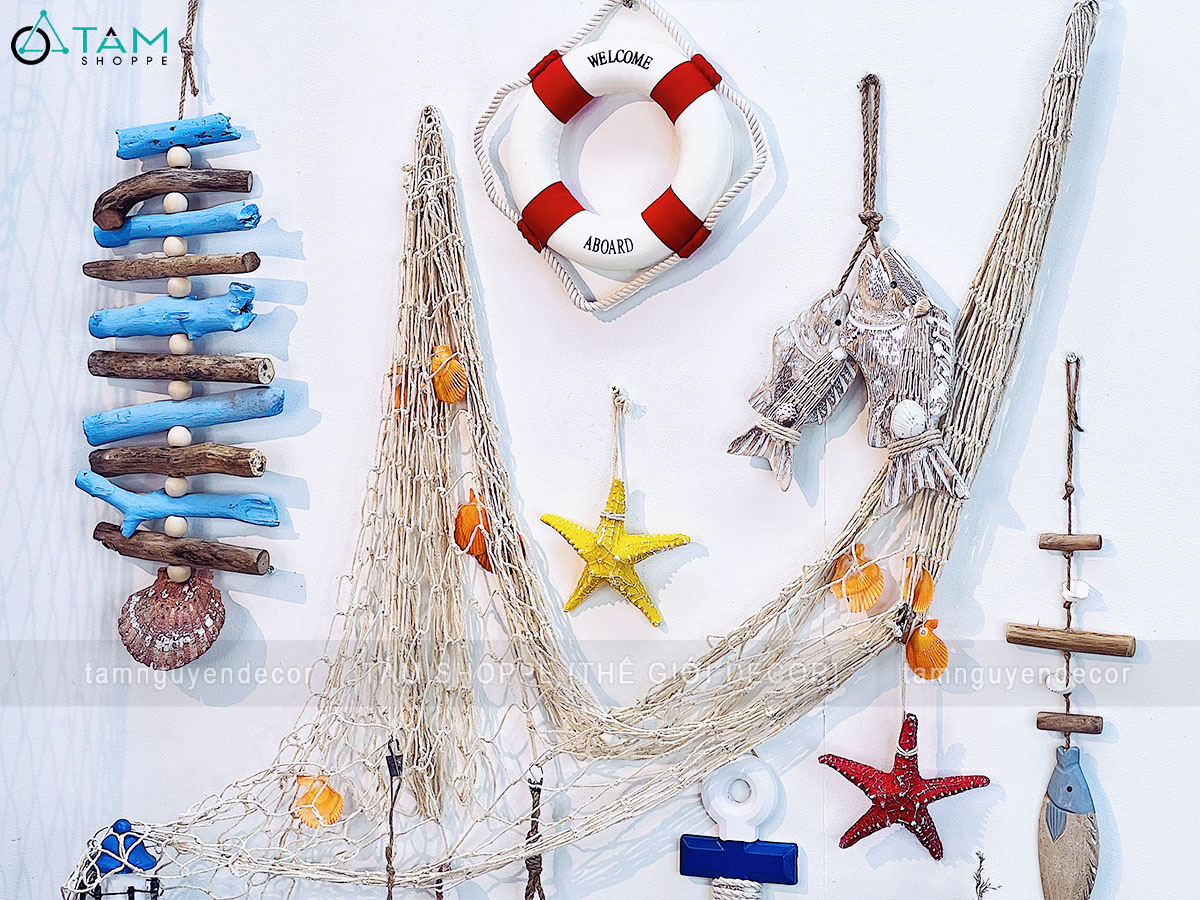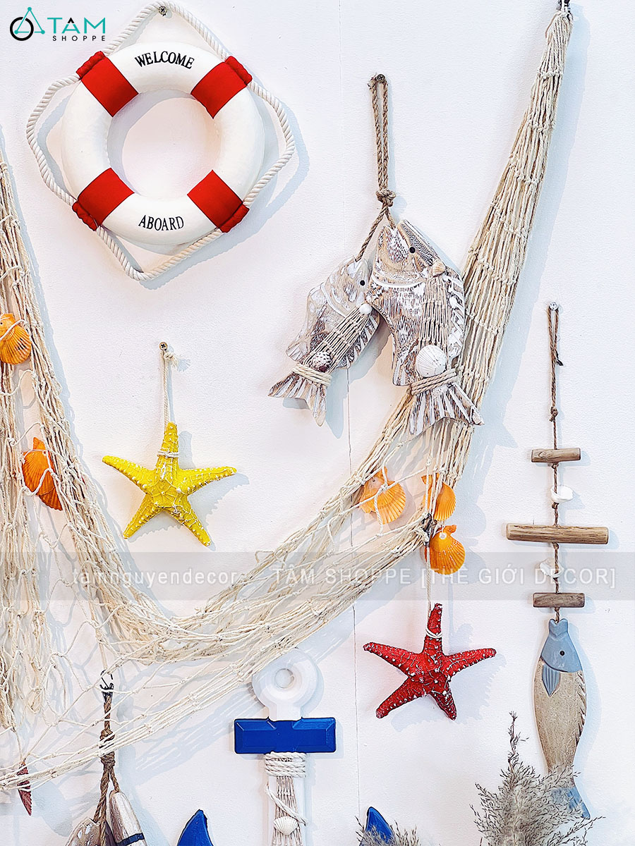 • Lưới treo tường kết hợp vỏ sò, sao biển, cá gỗ
