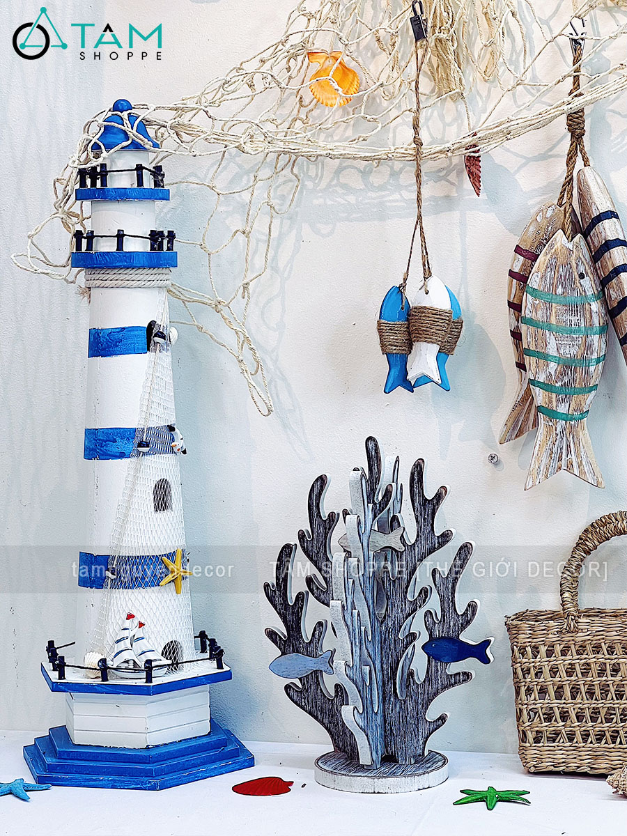 • Hải đăng mini, san hô giả, giỏ mây