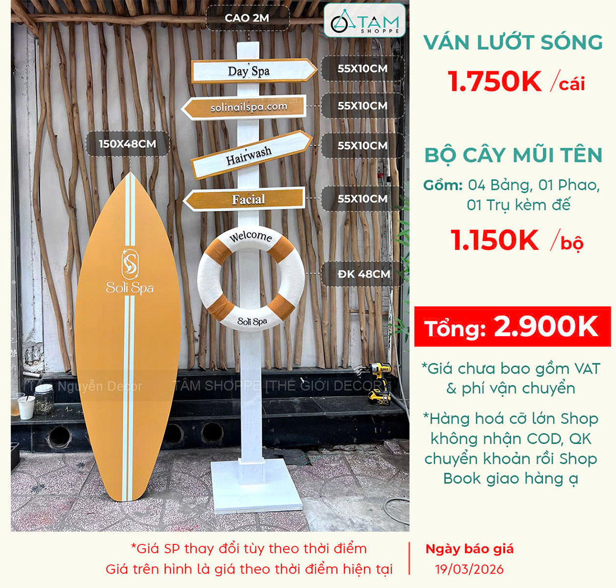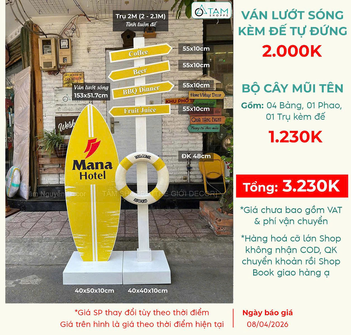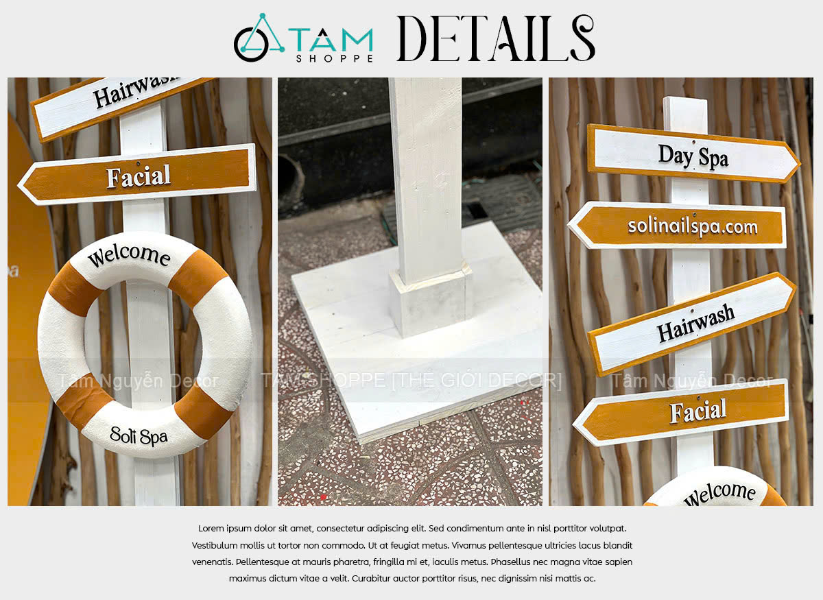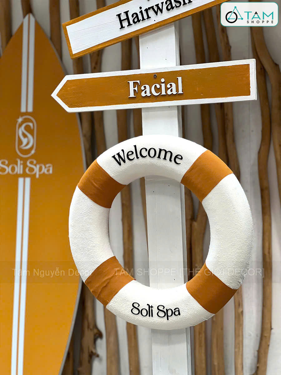 Concept decor biển “Summer Direction” - Logo, màu theo yêu cầu [2026 - Tâm Nguyễn Decor]. Set decor biển với ván lướt sóng – cây chỉ đường – phao cứu sinh là sự kết hợp giữa thẩm mỹ – nhận diện thương hiệu – tính ứng dụng cao, giúp concept này trở thành lựa chọn lý tưởng cho mọi không gian cần “refresh” vibe trẻ trung, năng động.