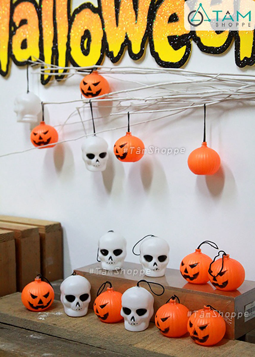 Set 10 đầu lâu nhựa mini dây treo [ĐK5cm - Nhựa cứng] trang trí đẹp mắt. Đồ trang trí Halloween là những vật dụng, mô hình hoặc phụ kiện được dùng để tạo không khí rùng rợn, huyền bí, vui nhộn đặc trưng cho ngày lễ Halloween (31/10).