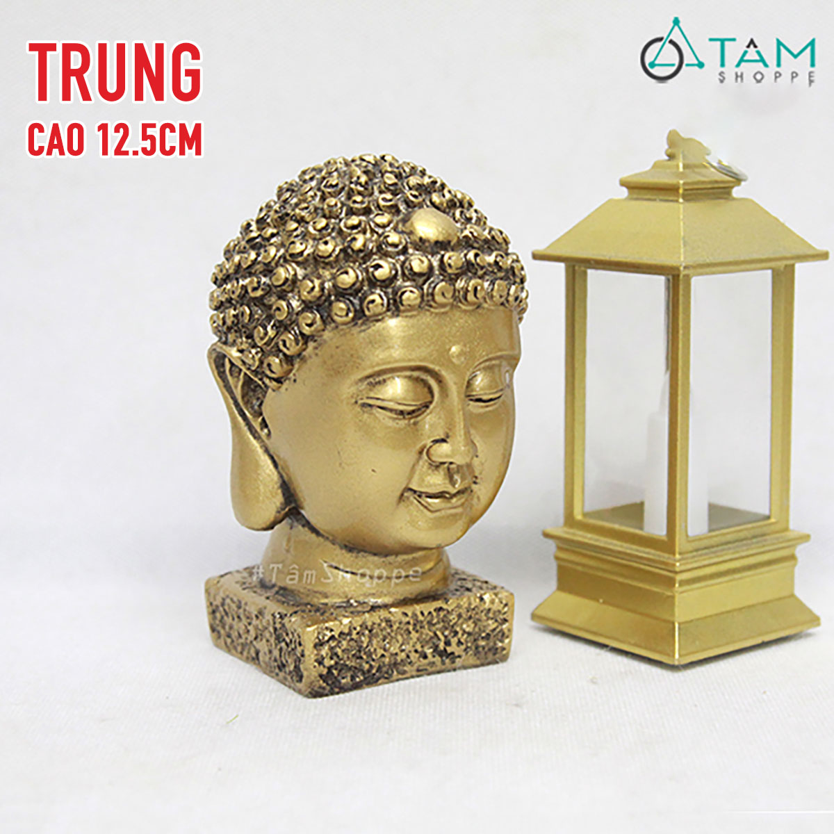 Đầu tượng Phật vàng đồng nhiều cỡ [Cao 9-22cm/ Giả cổ] trang trí đẹp mắt