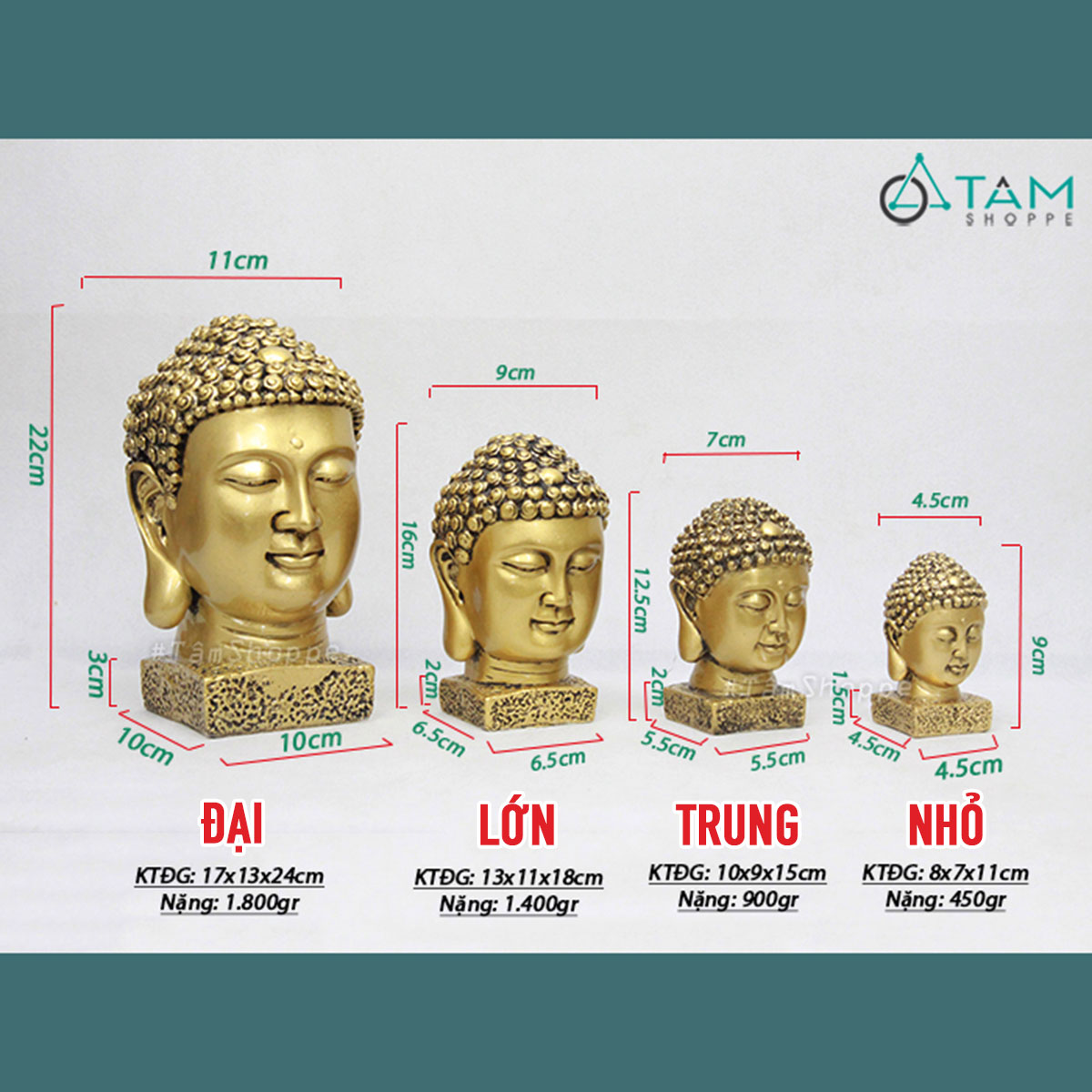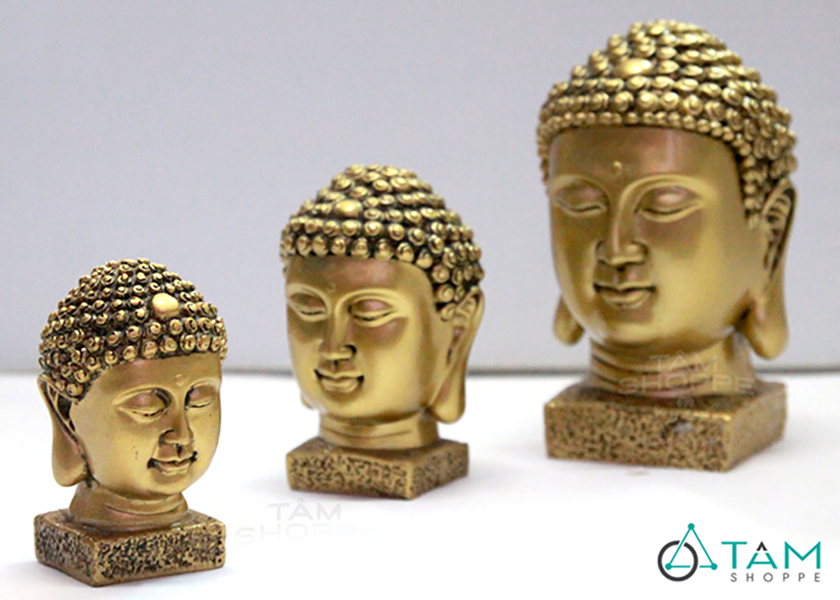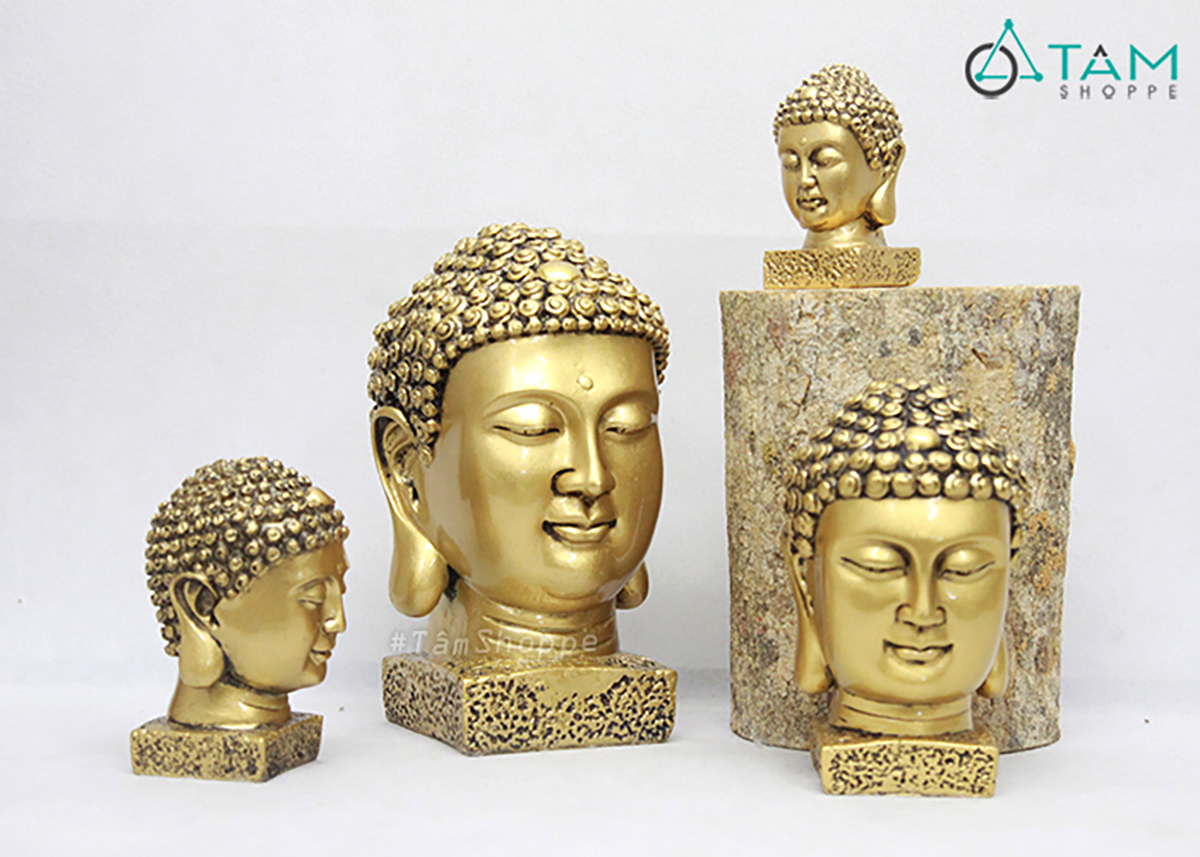 Đầu tượng Phật màu vàng đồng nhiều cỡ [Cao 9-22cm/ Giả cổ] trang trí đẹp mắt. Mang vẻ đẹp thanh tịnh và trang nghiêm, tượng Phật để bàn không chỉ là món đồ trang trí tinh tế mà còn là biểu tượng của sự bình yên, thư thái trong tâm hồn.