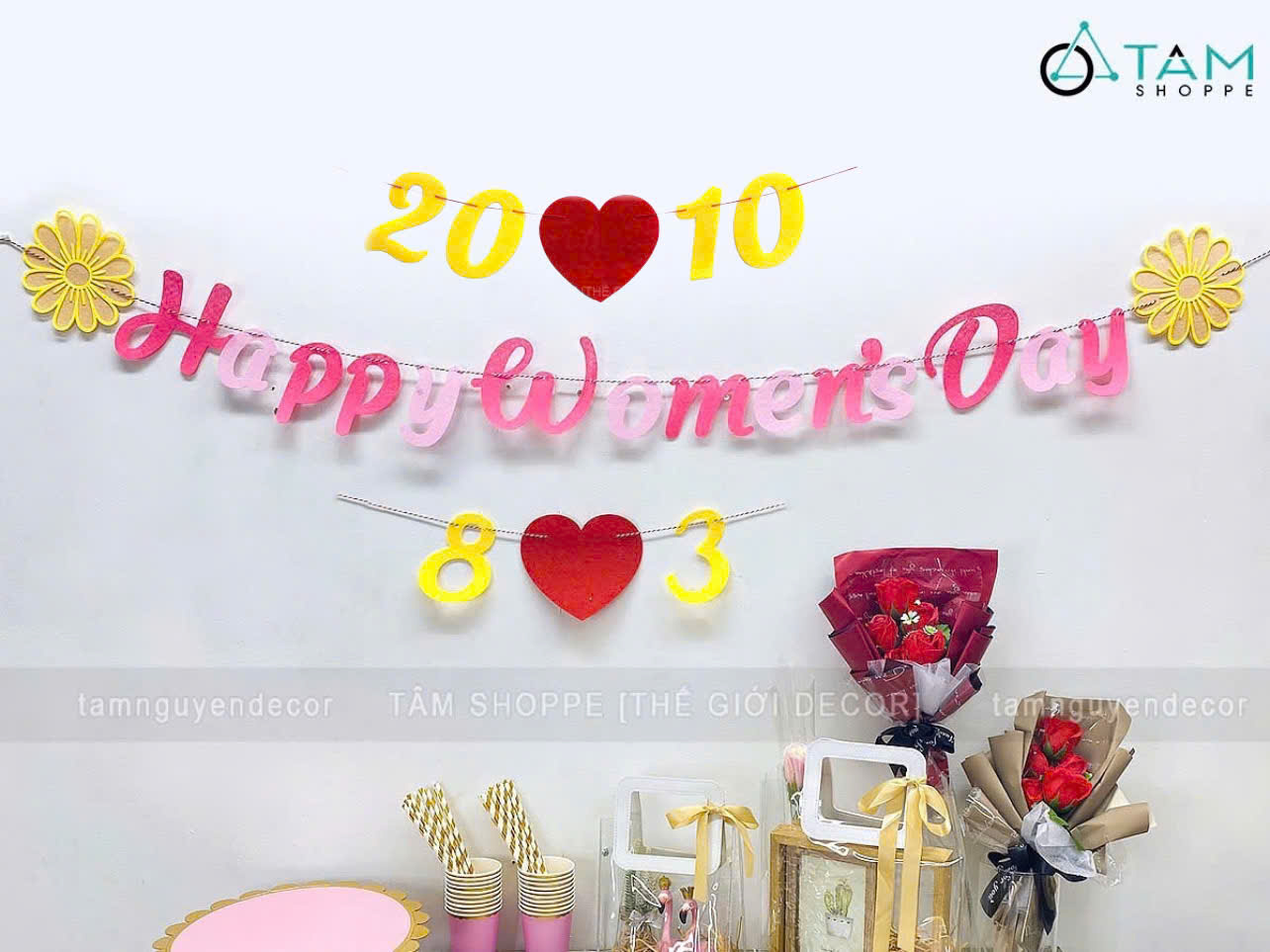 Dây banner chữ Happy Women's day 8 tháng 3 [Vải nỉ - Kèm dây] trang trí đẹp mắt
