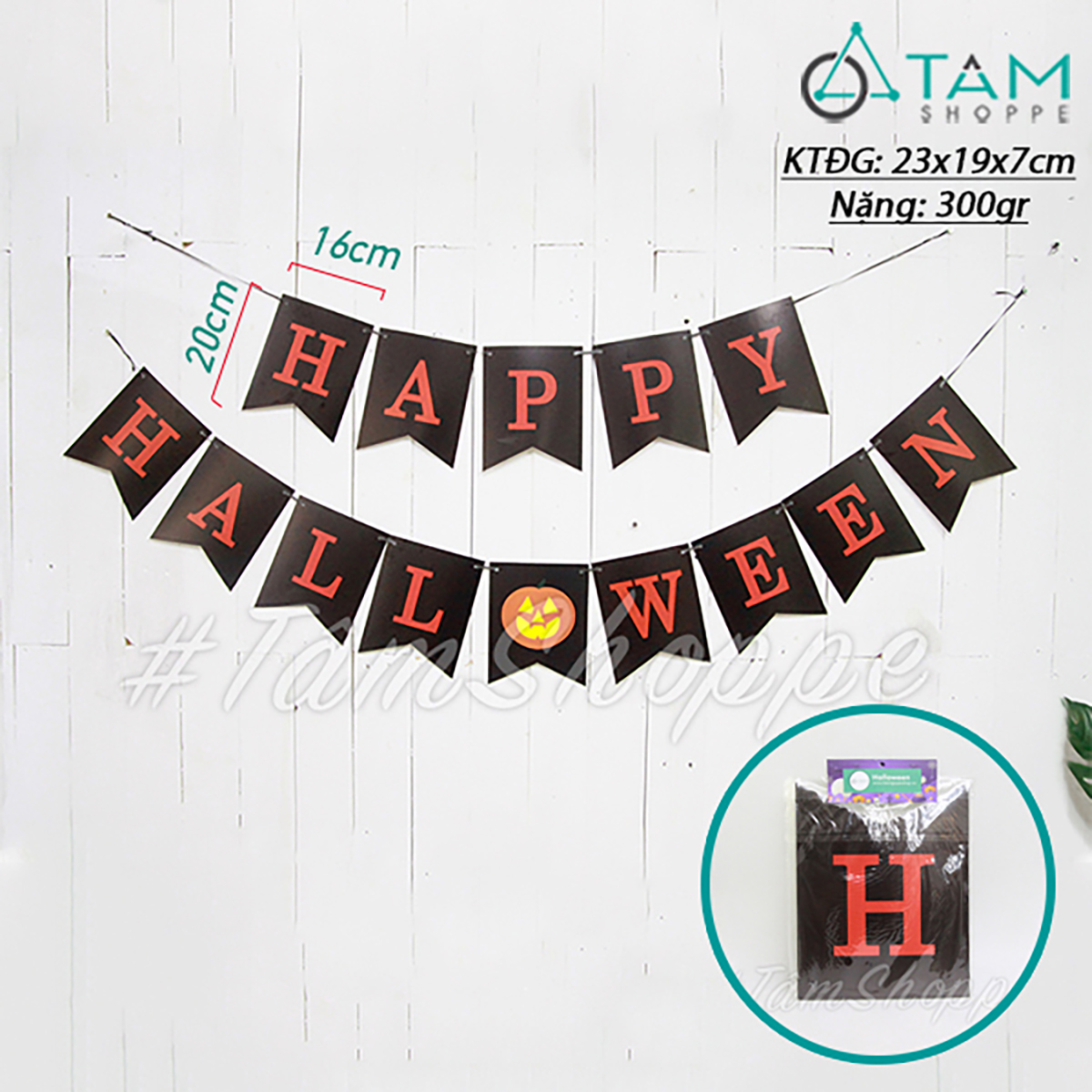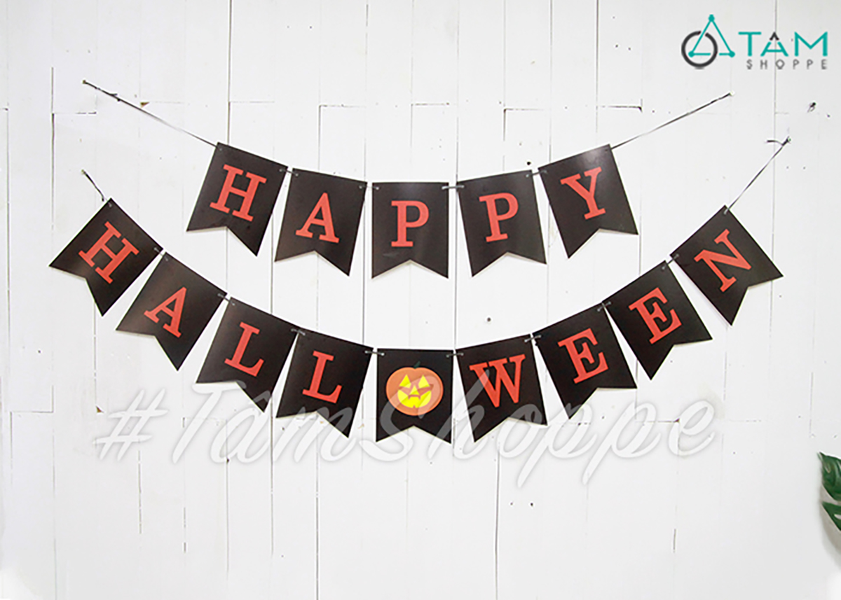 Dây banner giấy Happy Halloween cờ đuôi cá đen cam [Kèm dây - Giấy dày] trang trí đẹp mắt. Đồ trang trí Halloween là những vật dụng, mô hình hoặc phụ kiện được dùng để tạo không khí rùng rợn, huyền bí, vui nhộn đặc trưng cho ngày lễ Halloween (31/10).