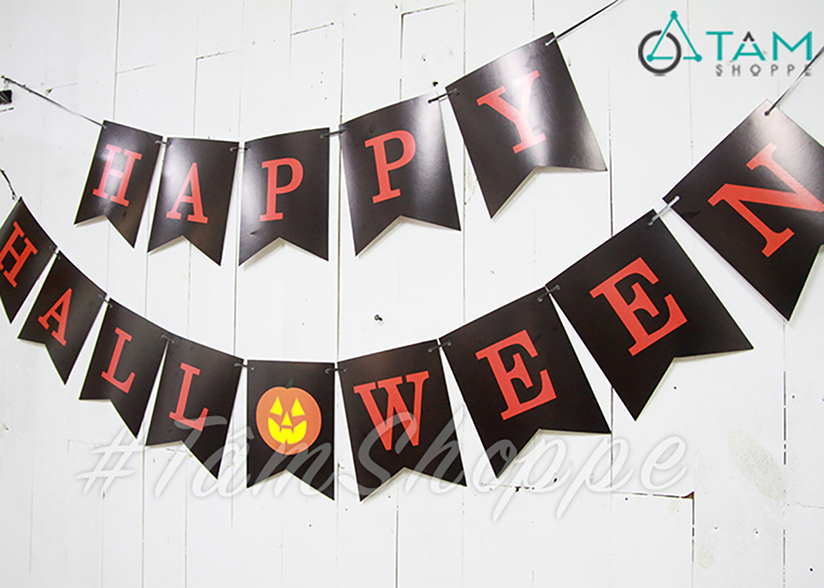 Banner chữ, dây treo trang trí Halloween là món decor rất được ưa chuộng vì dễ trang trí, giá rẻ và tạo không khí Halloween nhanh chóng. Chúng thường được treo ở cửa, tường, trần, quầy, sân vườn hoặc góc chụp ảnh.