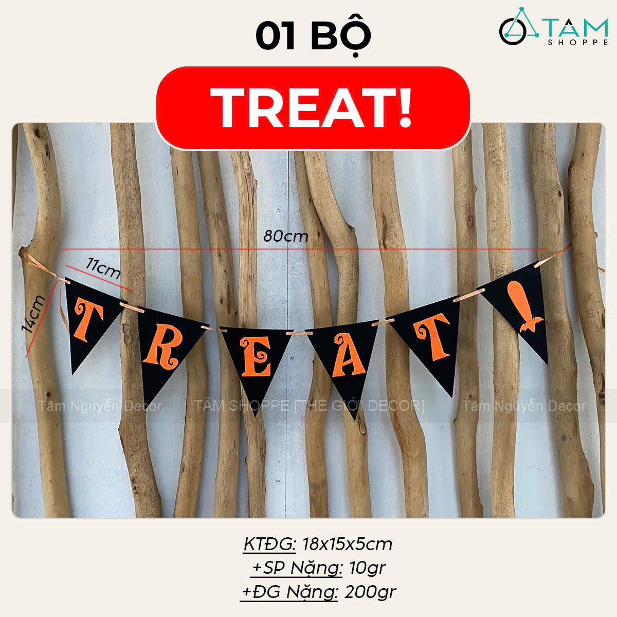 Dây banner nỉ Happy Halloween - Treats - Boo - Eak [Kèm dây - Nhiều kiểu] trang trí đẹp mắt.
