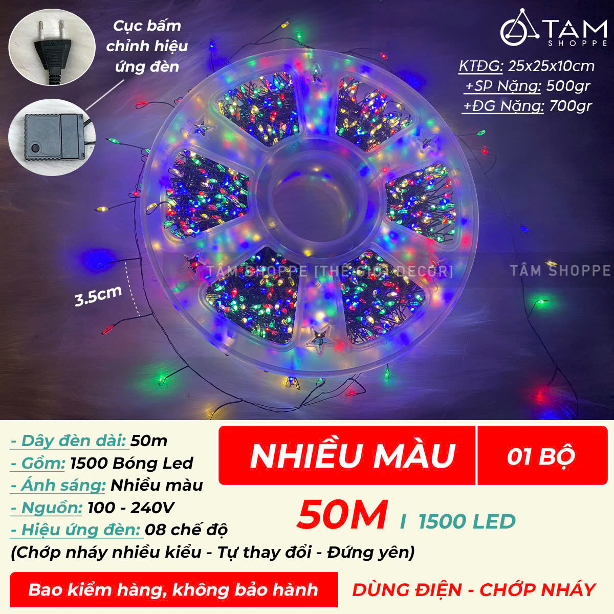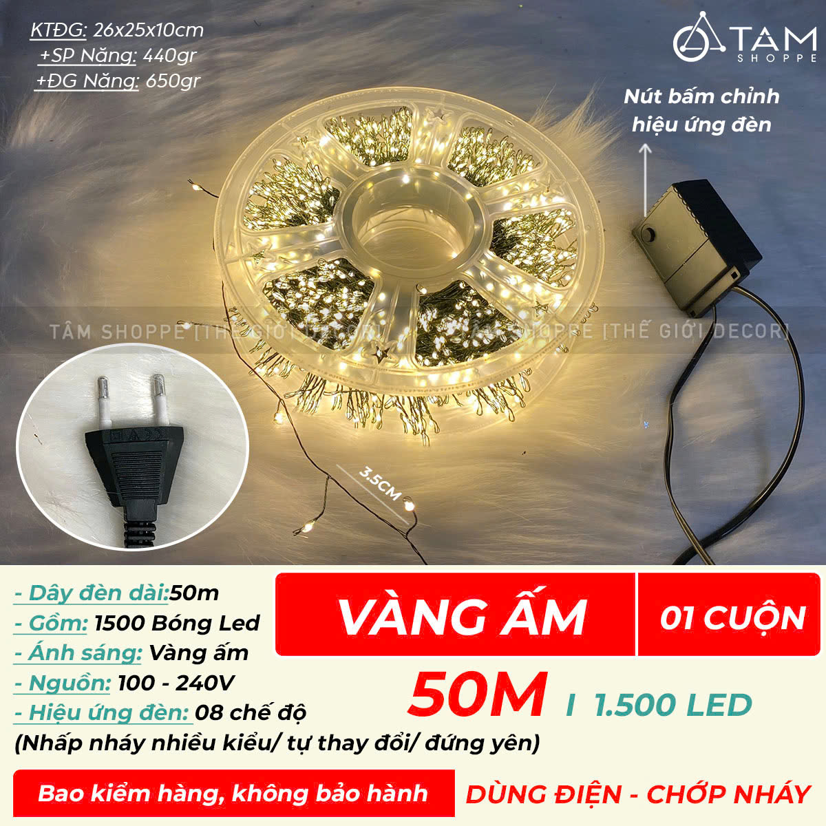 SP nhận được gồm bộ dây đèn hoàn chỉnh, chỉ cần cắm điện là đèn sáng.