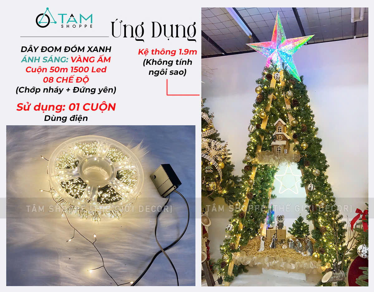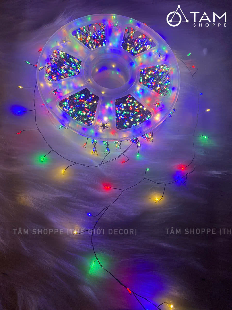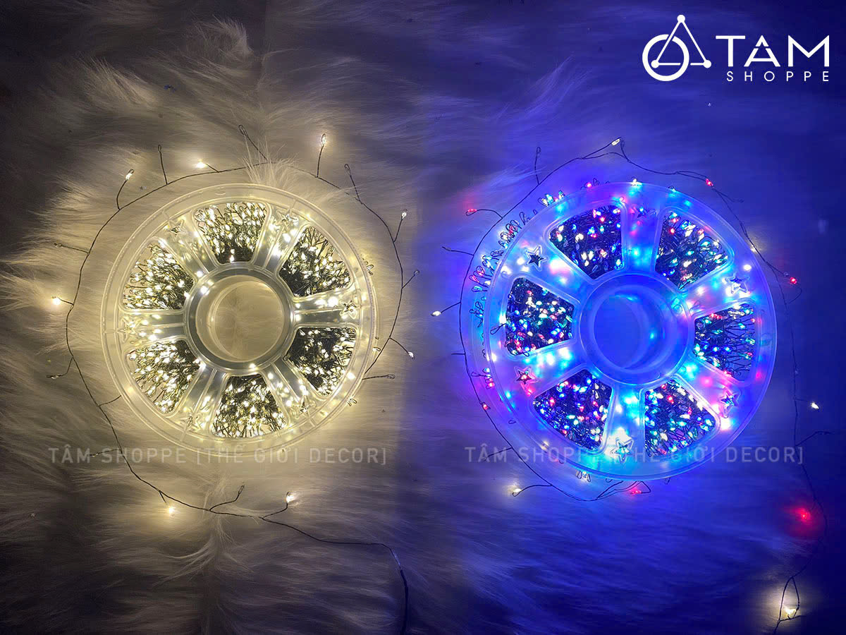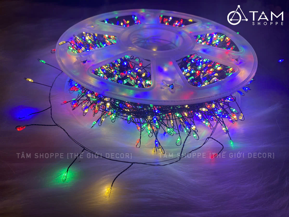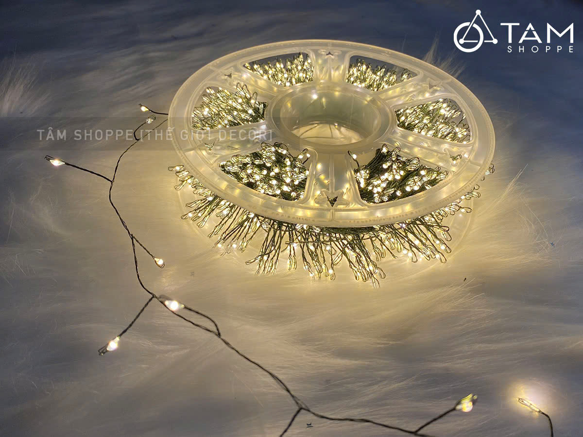 Cọng dây đèn bằng kẽm màu xanh lá mạ, xoắn kiểu rễ cây chỉa nhánh tạo nên ánh sáng lung linh đẹp mắt. Mật độ Led dày và sáng kiểu như những con đom đóm lung linh