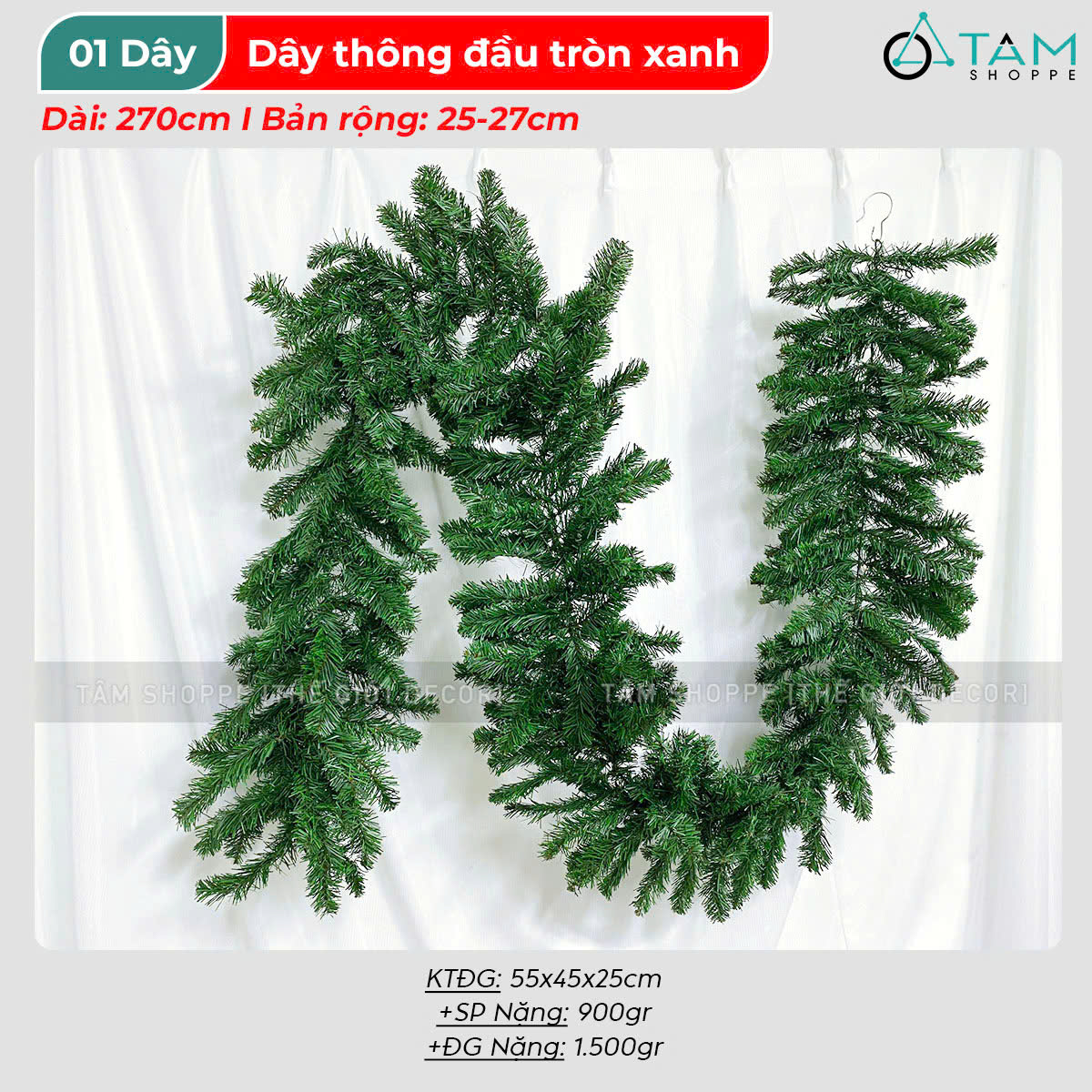 Dây lá thông bản lớn xanh trơn đầu tròn dài 270cm [Nhiều lá - Rộng 25cm] trang trí đẹp mắt. Đồ trang trí Noel là các vật dụng, phụ kiện, hoặc mô hình được dùng để trang hoàng không gian trong dịp Giáng Sinh (Noel), nhằm tạo nên không khí ấm áp, vui tươi và mang đậm sắc màu lễ hội.