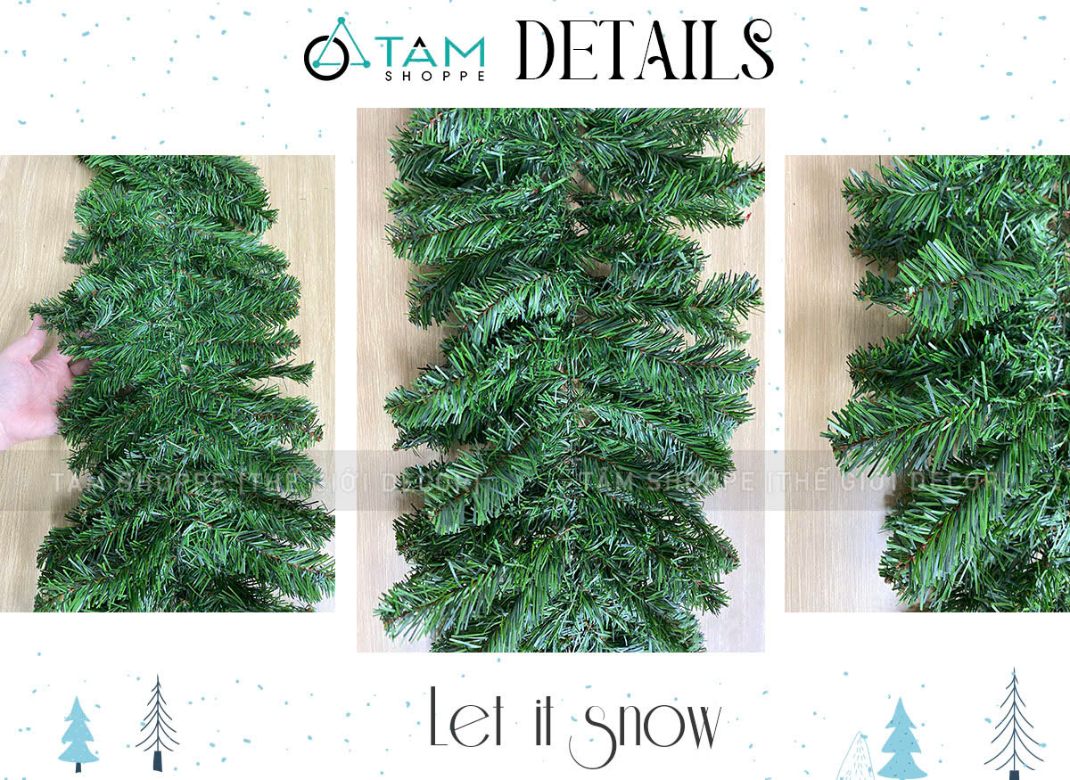 Dây lá thông Noel giúp không gian thêm bắt mắt và tràn ngập không khí Giáng Sinh. Với màu xanh tự nhiên, dây lá thông dễ kết hợp cùng đèn, quả châu hay nơ đỏ, sản phẩm mang đến cảm giác tươi mới và ấm cúng. Dây lá thông dùng để viền cửa rao vào, ban công, tay vịn cầu thang hoặc lò sưởi... Đây là lựa chọn hoàn hảo cho trang trí nhà ở, cửa hàng hoặc văn phòng nhân dịp Noel.