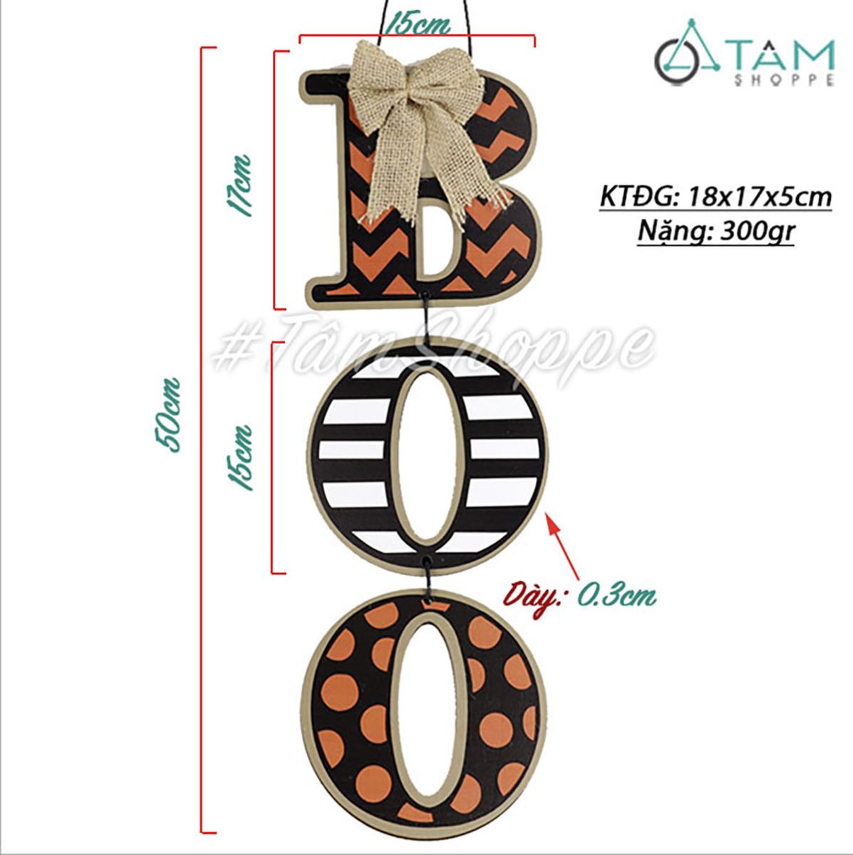 Dây treo Halloween chữ BOO gỗ hoạ tiết [01 mặt - Dài 50cm] trang trí đẹp mắt. Đồ trang trí Halloween là những vật dụng, mô hình hoặc phụ kiện được dùng để tạo không khí rùng rợn, huyền bí, vui nhộn đặc trưng cho ngày lễ Halloween (31/10).