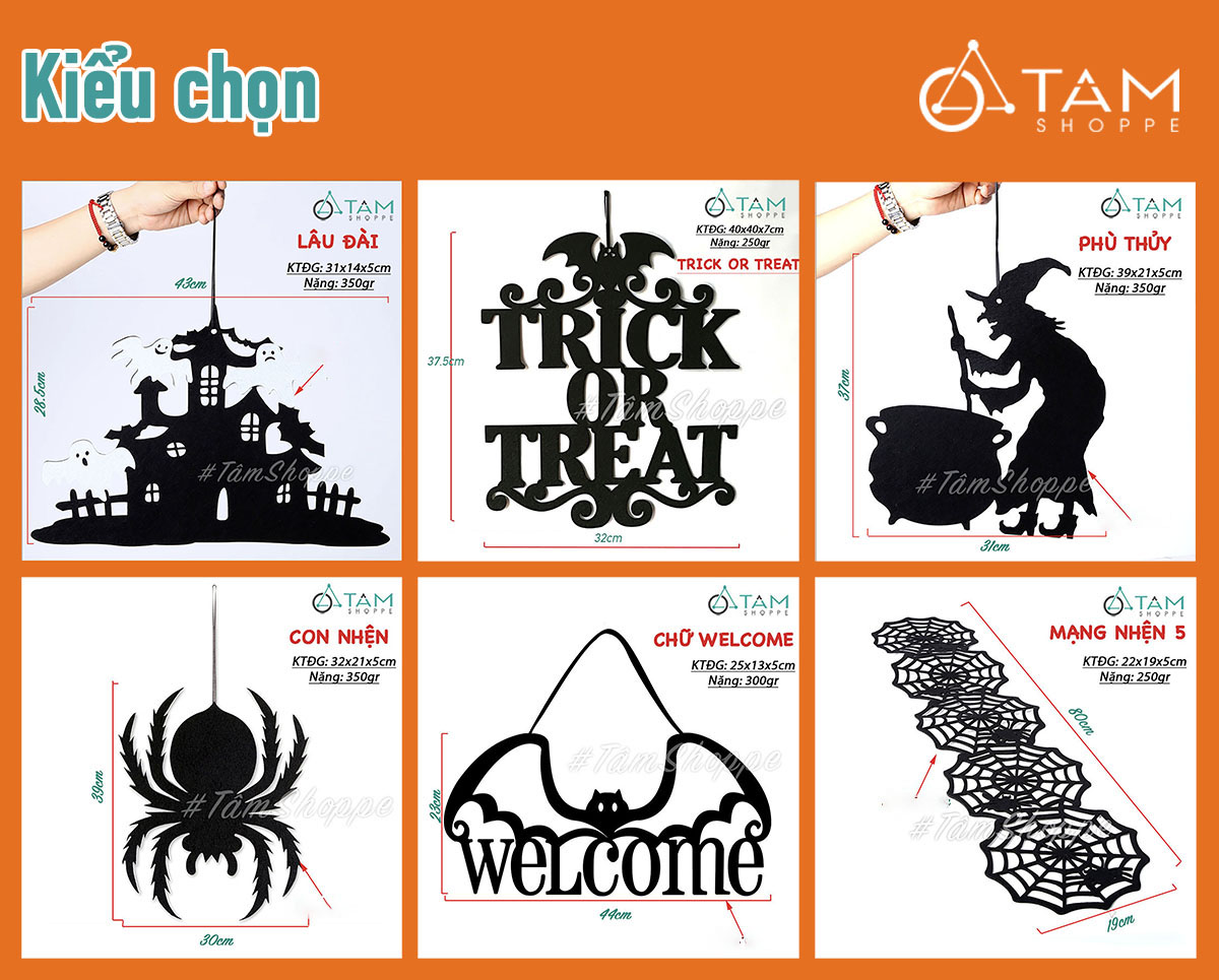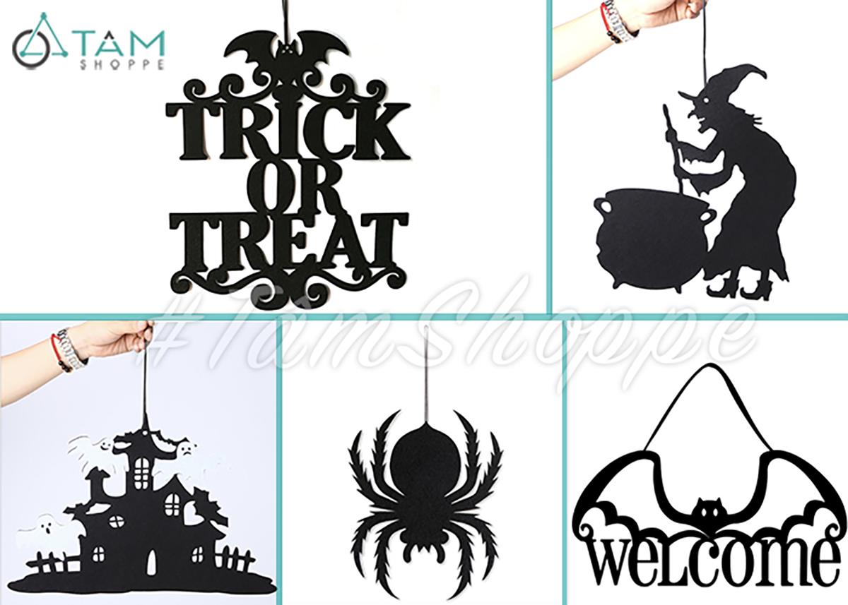 Dây treo Halloween nỉ đen 30-80cm nhiều kiểu [Có dây treo - 2 lớp] trang trí đẹp mắt. Đồ trang trí Halloween là những vật dụng, mô hình hoặc phụ kiện được dùng để tạo không khí rùng rợn, huyền bí, vui nhộn đặc trưng cho ngày lễ Halloween (31/10).
