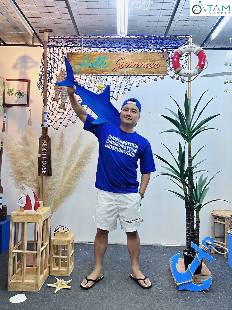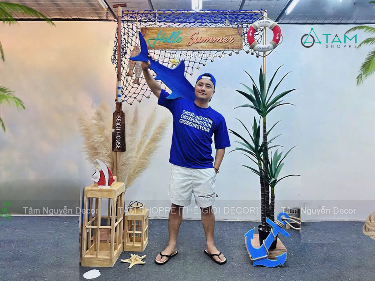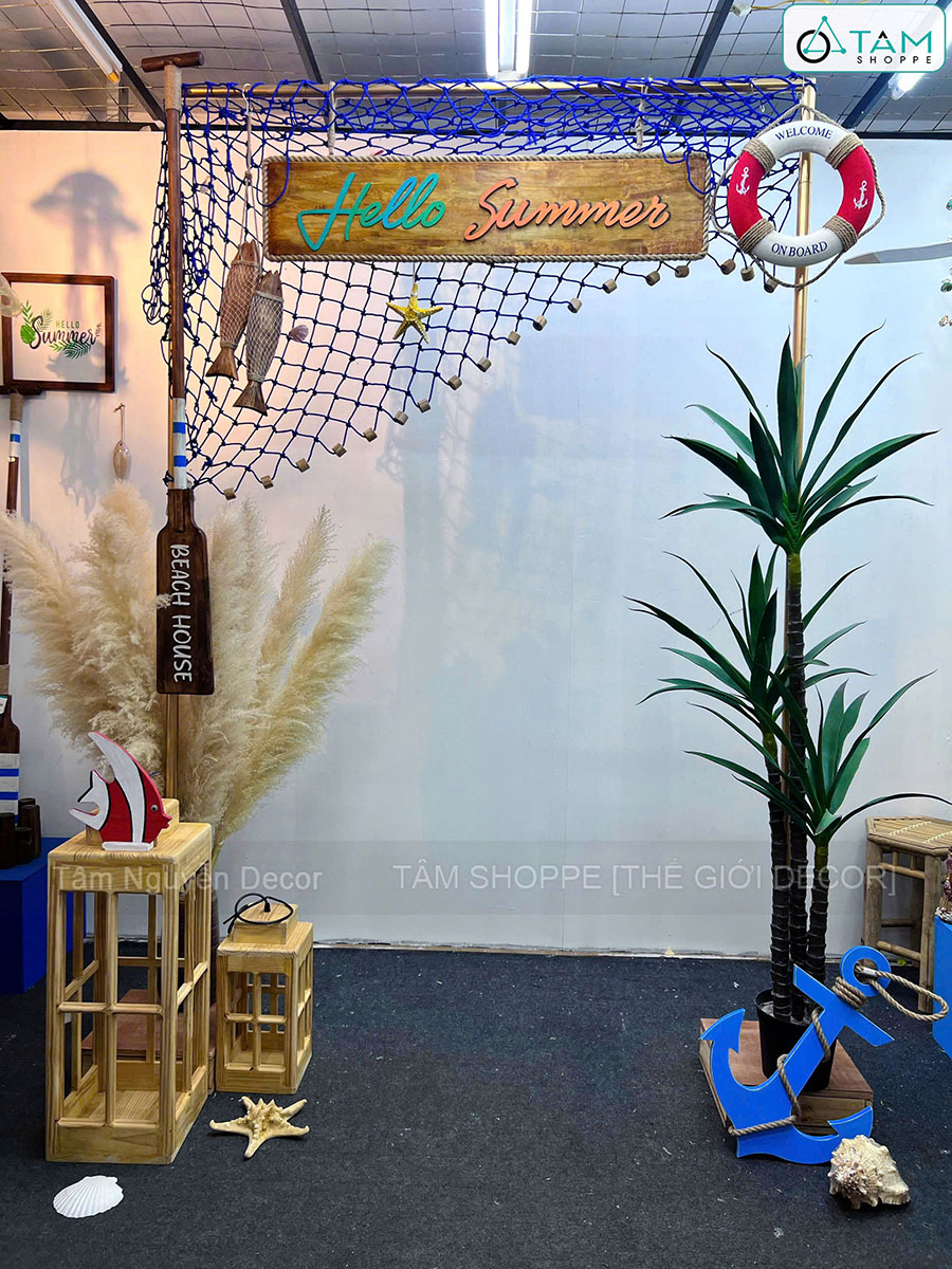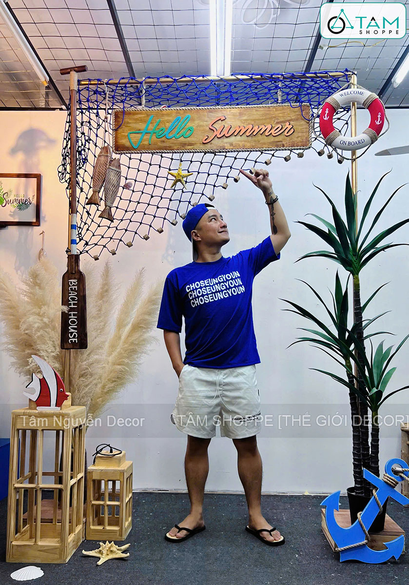 Hello Summer - Decor cổng khung sắt đơn giản chào hè [2026 - Tâm Nguyễn Decor]. Mùa hè là thời điểm lý tưởng để mang hơi thở biển cả vào không gian sống và kinh doanh. Concept “Hello Summer” với cổng khung sắt đơn giản chính là lựa chọn tinh gọn nhưng vẫn nổi bật, tái hiện tinh thần tự do, phóng khoáng của những ngày rong chơi bên biển.