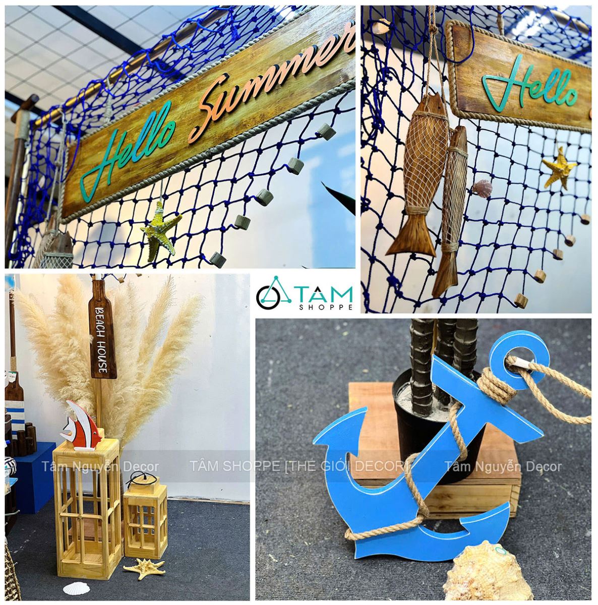 • Mỏ neo, sao biển, vỏ sò, đèn lồng gỗ