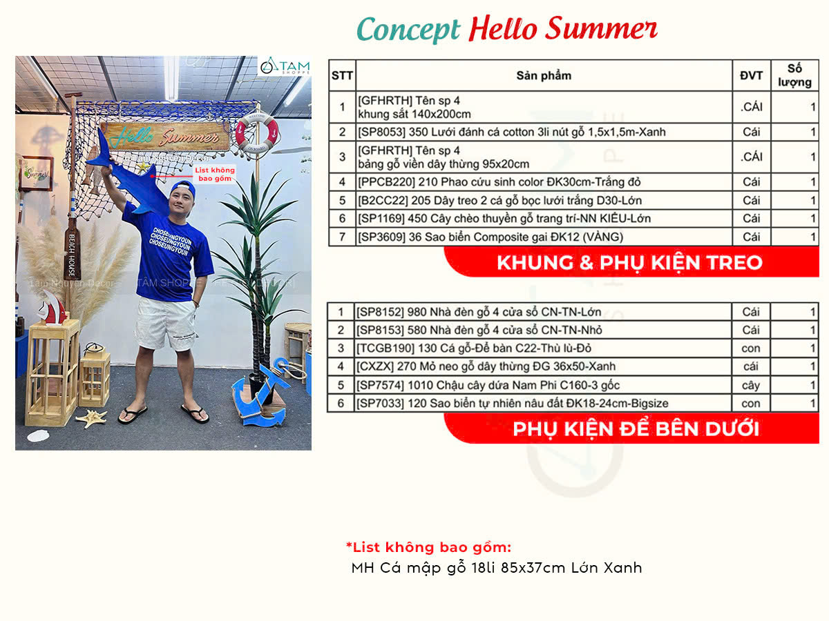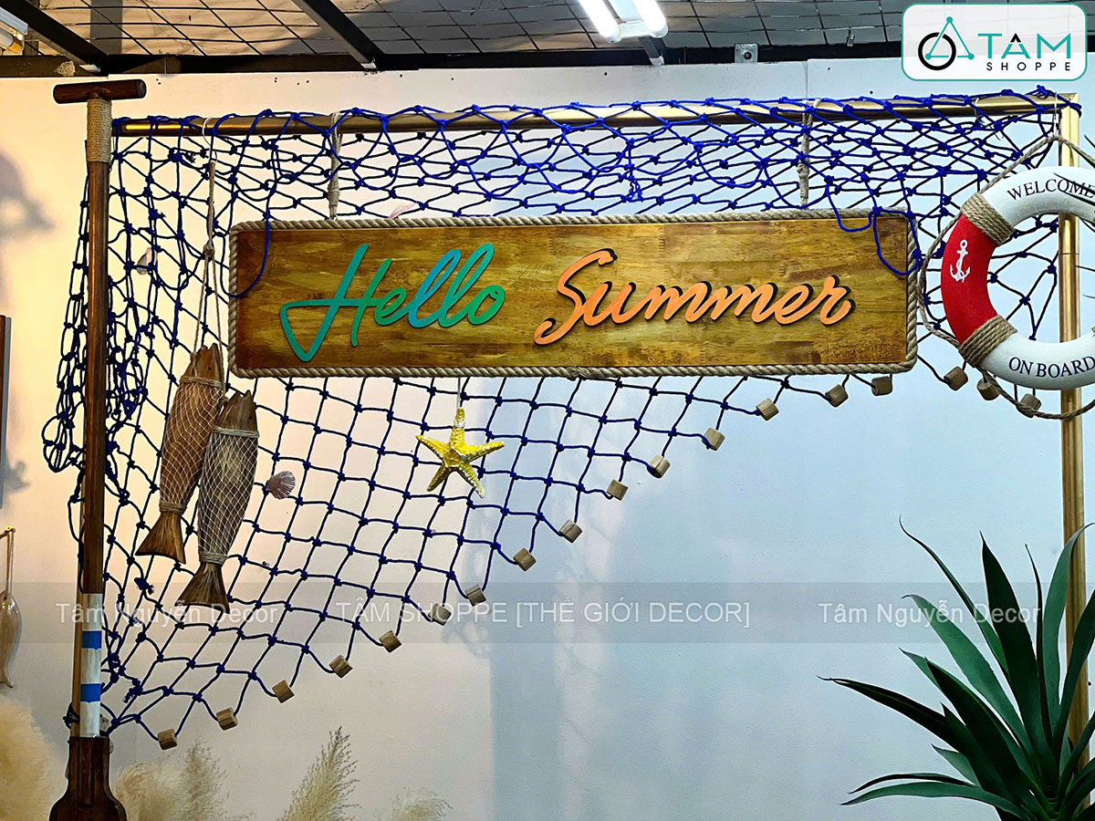 • Điểm nhấn bằng bảng gỗ “Hello Summer” mang vibe tươi vui, năng động